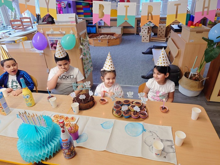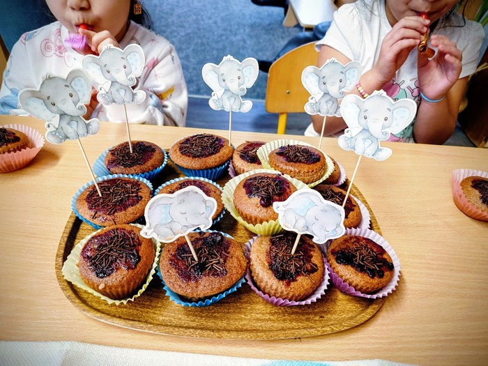 I u slůňat se letos poprvé slavilo. Čekala nás totiž oslava Denisky, Elišky, Irenky a Domči. Všechno propuklo už ve středu, kdy to u nás krásně vonělo. Oslavenci si totiž za pomocí paních učitelek upekli Krtkův dort, muffiny a pizza šneky. Míchalo se, zdobilo, ochutnávalo... A hlavně se společně tvořilo s obrovskou radostí! Rodičům moc děkujeme za přinesení surovin.
