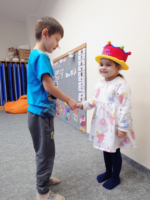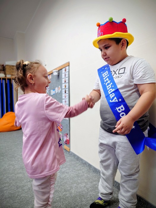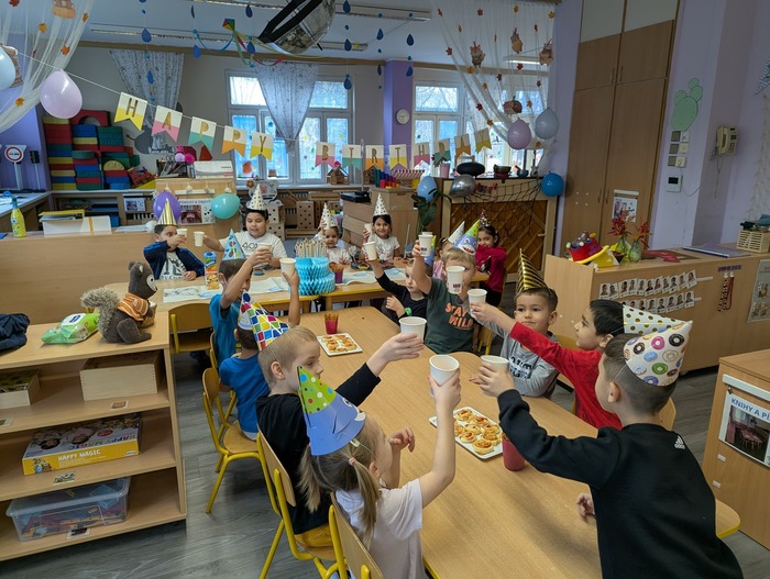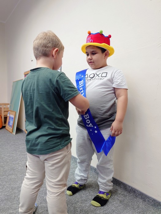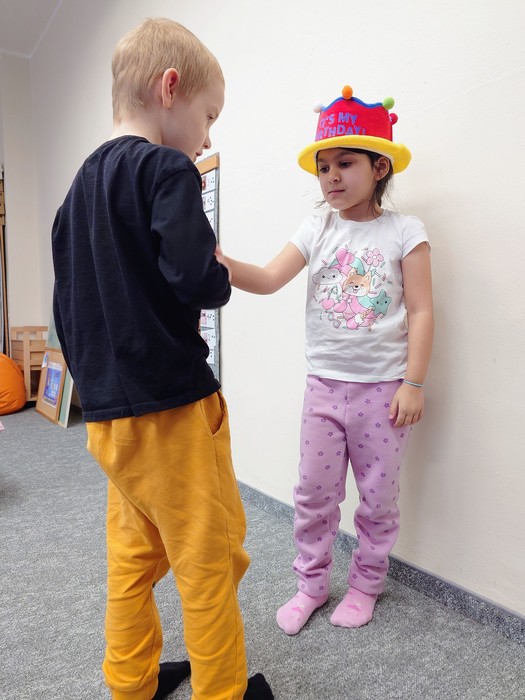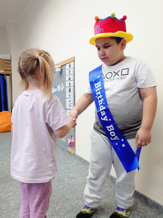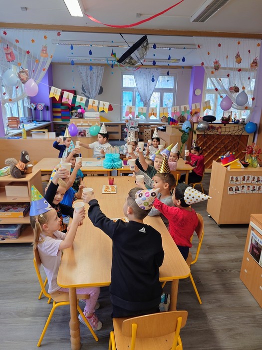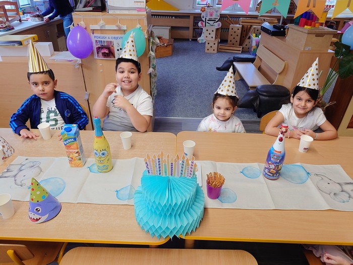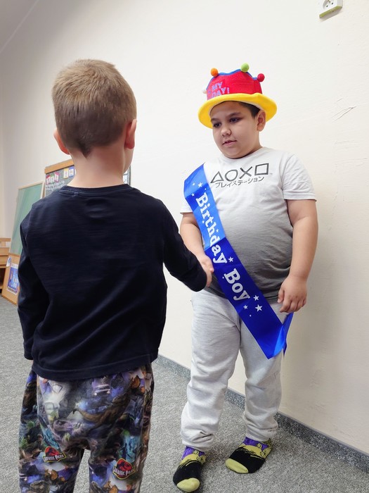 A ve čtvrtek přišel velký den, a to narozeninová oslava! Ráno děti namalovali oslavencům obrázky, které jsme jim potom společně předali. V kruhu jsme oslavencům popřáli a potom jsme se vrhli na všechny ty dobroty, které si děti sami připravily. Nezapomněli jsme ale ani na zpívání písničky a sfouknutí svíček. A co by to bylo za párty bez tancování a hry s balonky. Oslavu jsme si všichni moc užili a už vyhlížíme další.