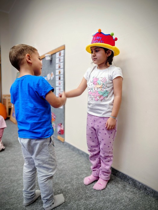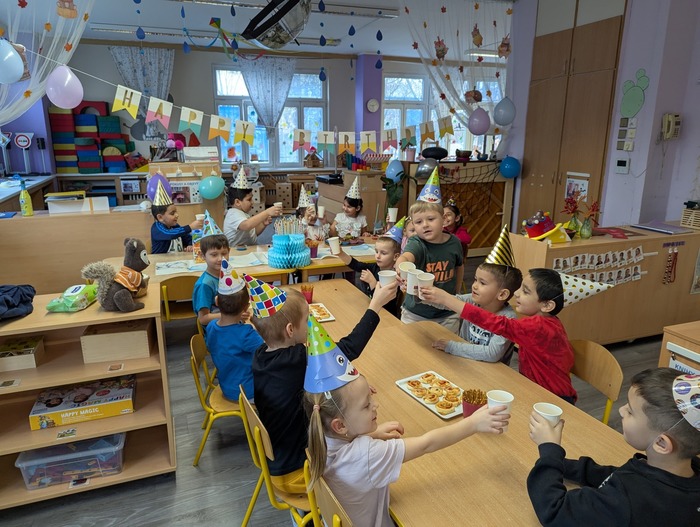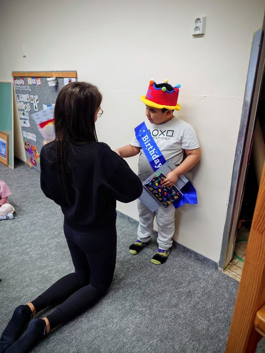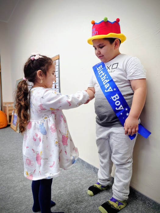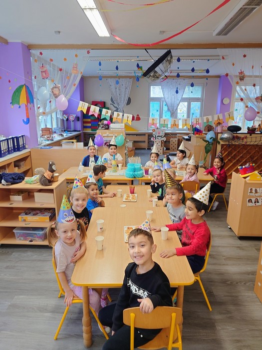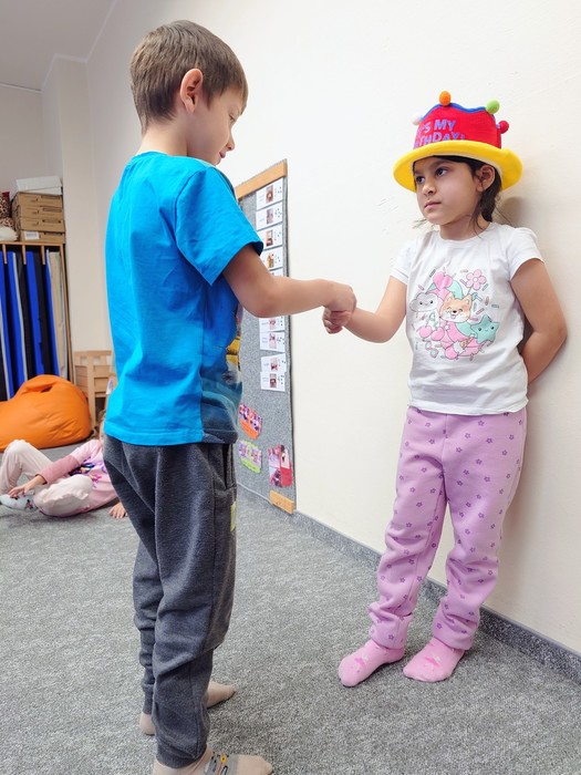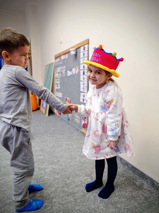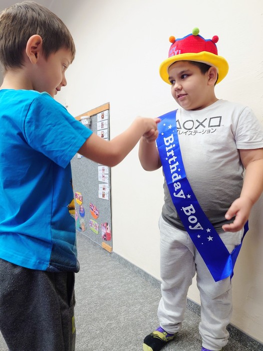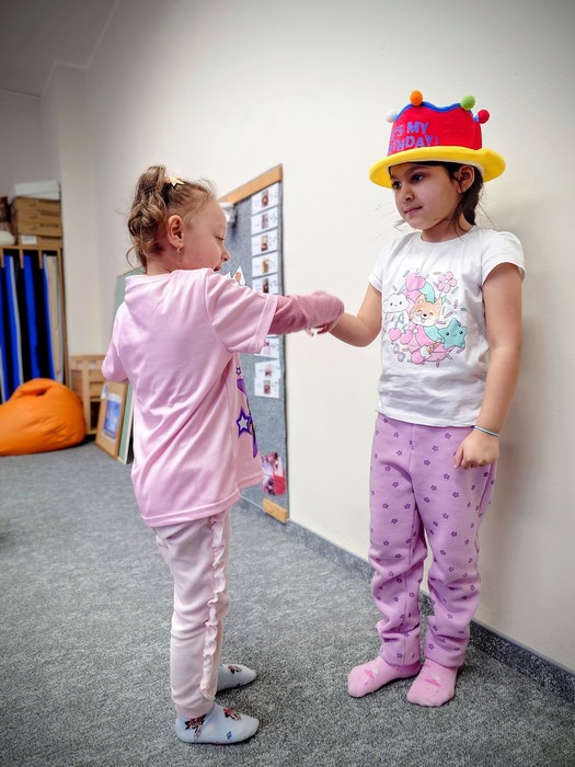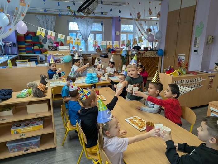 A ve čtvrtek přišel velký den, a to narozeninová oslava! Ráno děti namalovali oslavencům obrázky, které jsme jim potom společně předali. V kruhu jsme oslavencům popřáli a potom jsme se vrhli na všechny ty dobroty, které si děti sami připravily. Nezapomněli jsme ale ani na zpívání písničky a sfouknutí svíček. A co by to bylo za párty bez tancování a hry s balonky. Oslavu jsme si všichni moc užili a už vyhlížíme další.