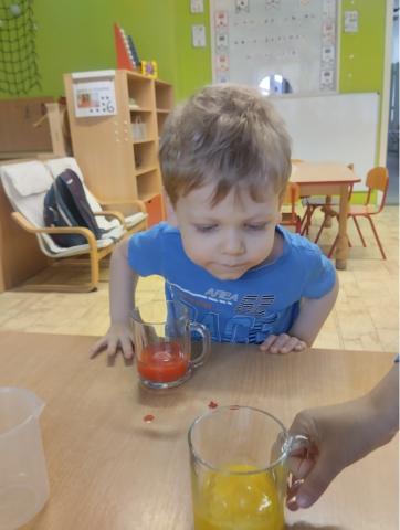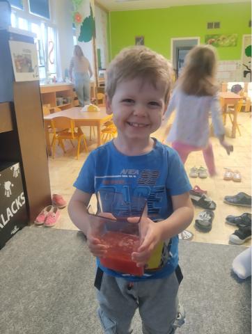 V dubnu jsme měli téma přírodní živly – oheň, voda, země, vzduch a čarodějnice. Malovali jsme na kameny, pozorovali žížaly a hmyz pod lupou, vytvářeli oheň na papír pomocí dlaně a barev. V pokusech jsme vytvořili lávovou lampu a další zábavné činnosti. Moc jsme si to užili a budeme se těšit na další návštěvu.
