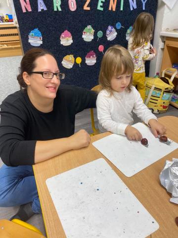 V říjnu jsme opět zahájili rodičovský klubík, přivítali jsme mezi námi nové i stávající děti s rodiči. Začátek října jsme věnovali tématu Dary podzimu, kdy jsme se zaměřily na ovoce a zeleninu dozrávající na podzim, nevynechali jsme ani kaštany, které jsme využili jak k tvoření, tak i pro hudební chvilku.