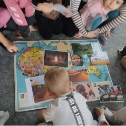 • Koncem posledního týdne v únoru jsme odletěli do dalekých krajin Afriky a vyrobili si barevný africký náhrdelník. Děti si také vyzkoušely přenést košík na hlavě přes překážkovou dráhu.