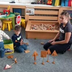 • Čtvrtý týden jsme měli téma Co léta, jezdí, pluje. Tento týden jsme si vytvořili semafor, v pohybu jsme si zahráli na rušnou křižovatku, kde děti rozeznávaly barvy semaforu.