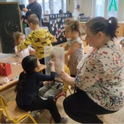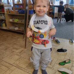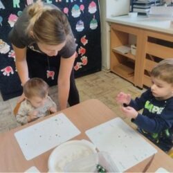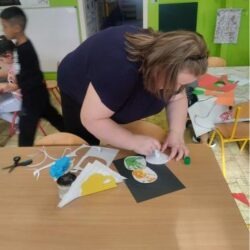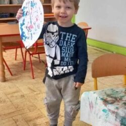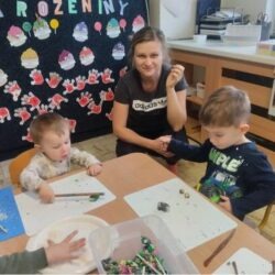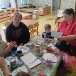 • Druhý týden nás čekal Masopust, kde jsme si vyrobili masopustní masku a vytvořili balonky, které jsme ozdobili pomocí prsových barev. V manipulativech jsme si vymodelovali a ozdobili koláč.