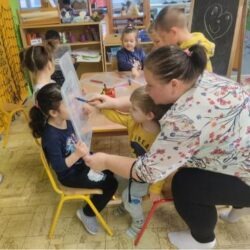 • První týden v únoru jsme pokračovali v aktivitách Pocity v nás, kreslili jsme obličej kamaráda a v pohybu jsme si prošli překážkovou dráhu.