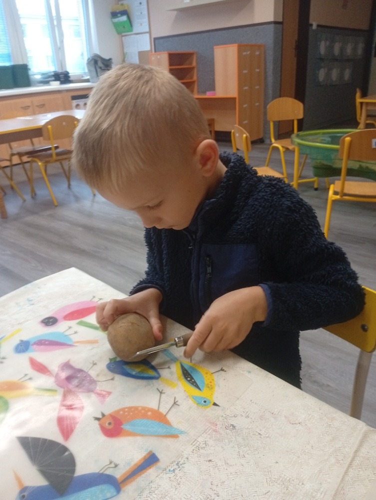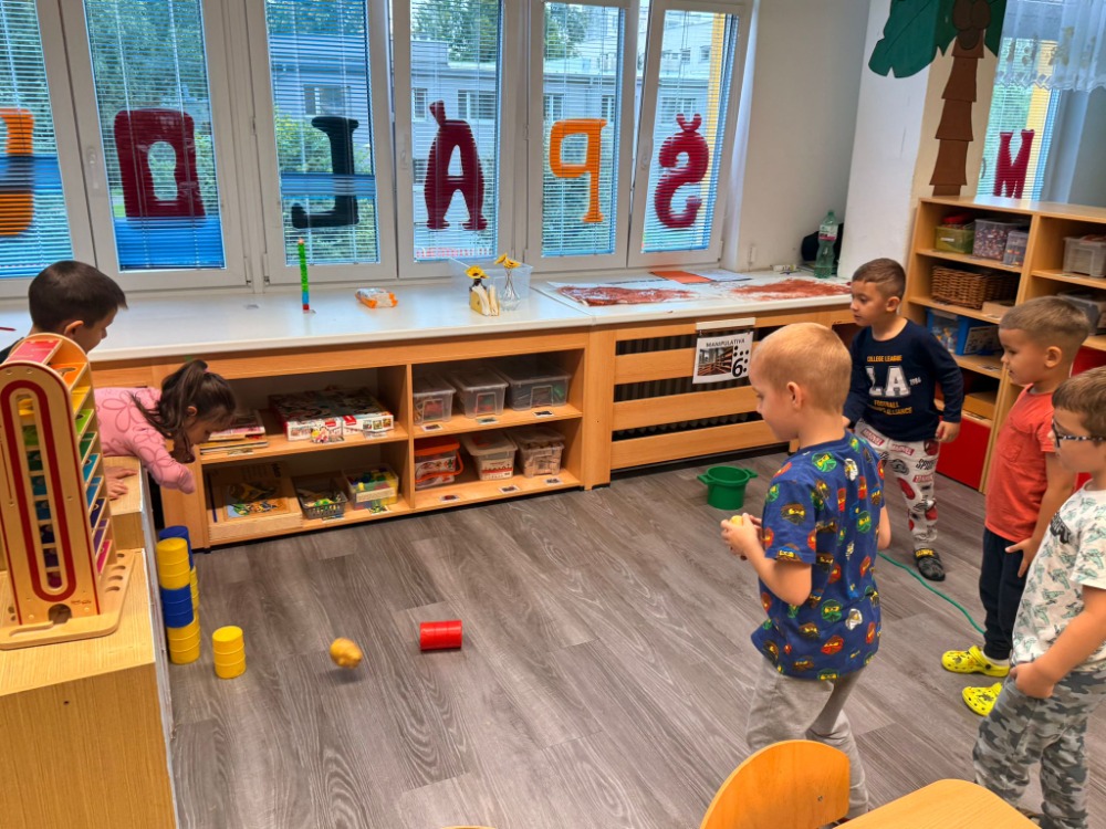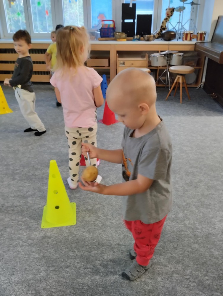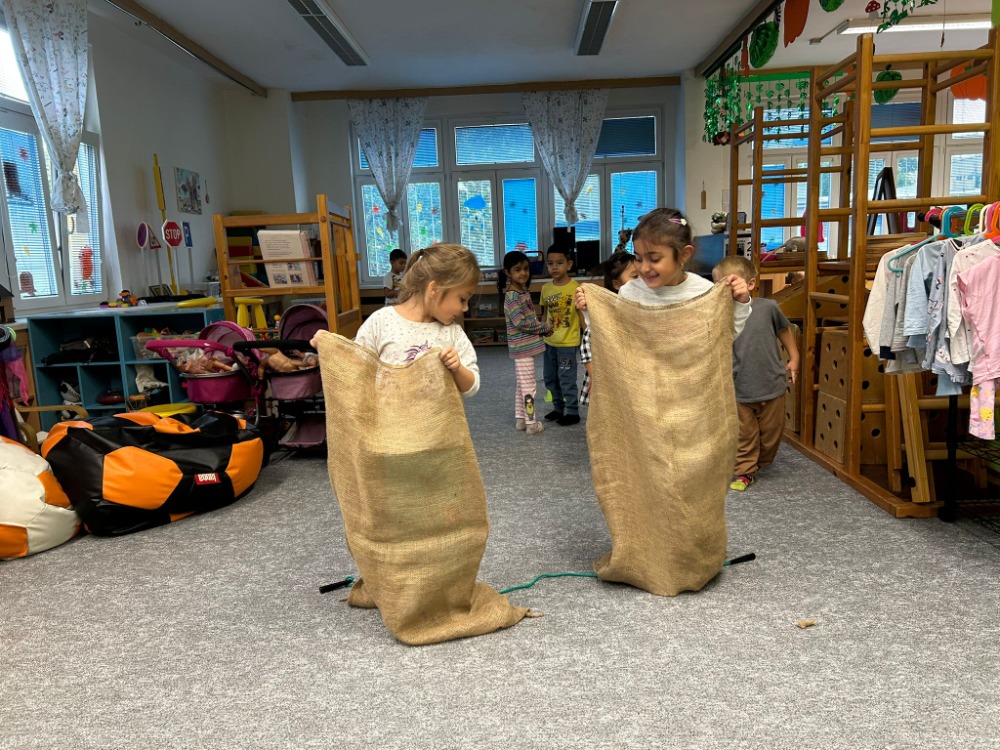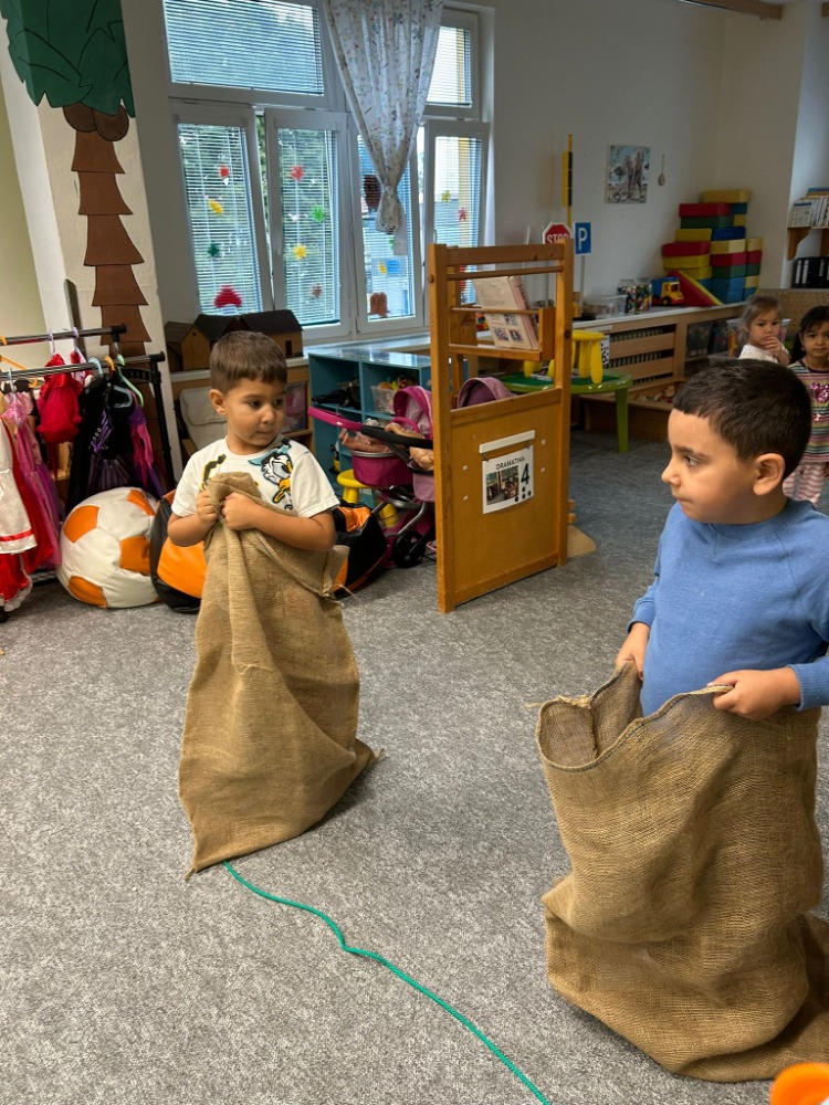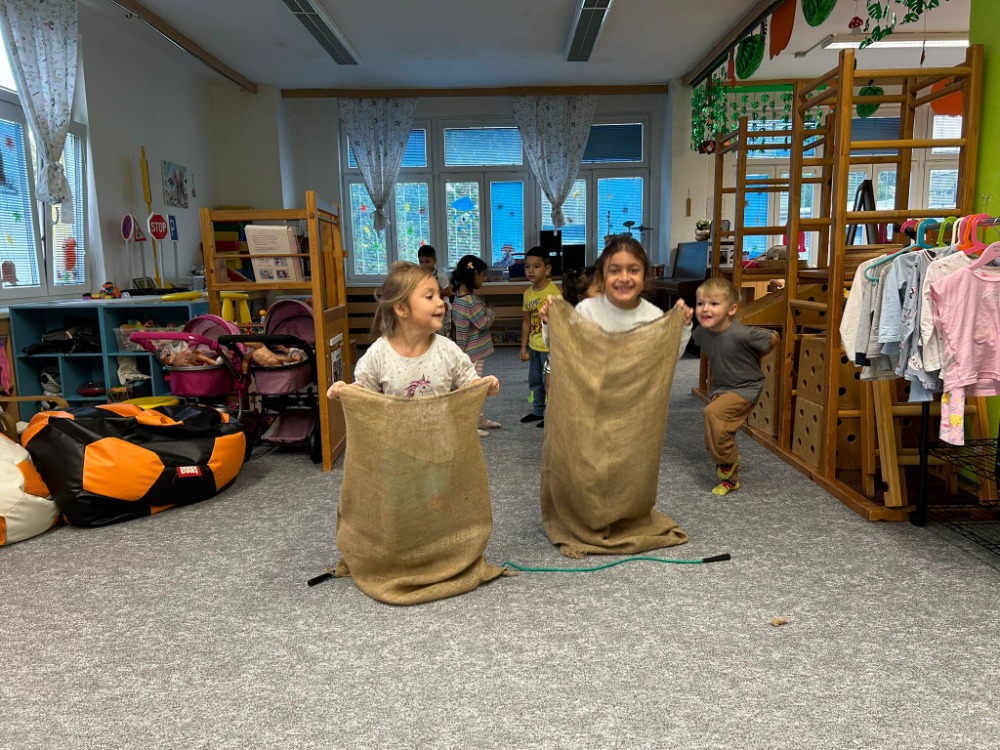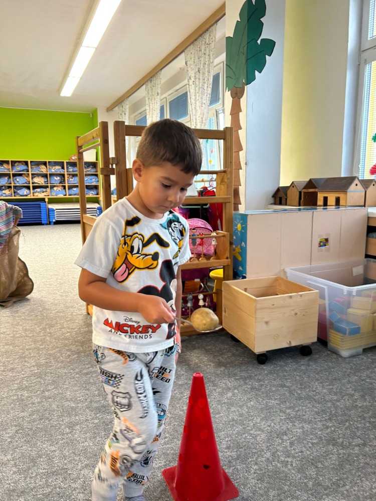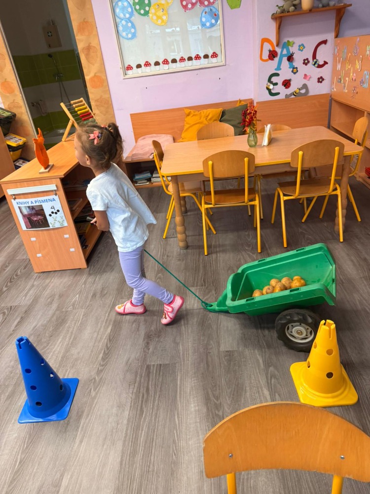 Dnešní dopoledne v naší školce se neslo v duchu Bramboriády. I když nám počasí nepřálo, nic nás nezastavilo – bramborové dobrodružství jsme si užili naplno přímo ve třídách. Na děti čekalo plno úkolů – skákání v pytli, slalom s vozíkem plným brambor, škrabání brambor, obtiskování brambor, ale také třeba hledání traktoru v knížkách nebo objevování brambor v písku. A věřte, že to nebylo vůbec jednoduché! 😊 Děti všechno zvládly s úsměvem a s obrovským nasazením.