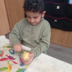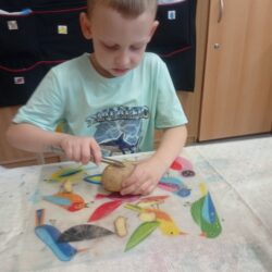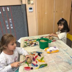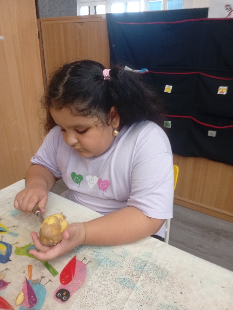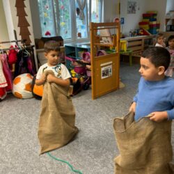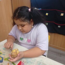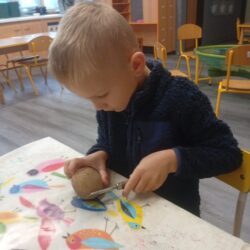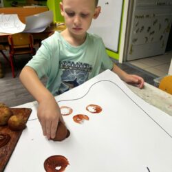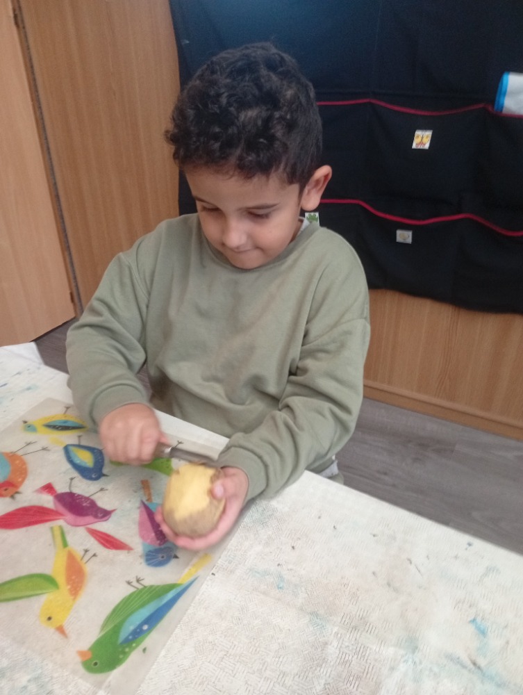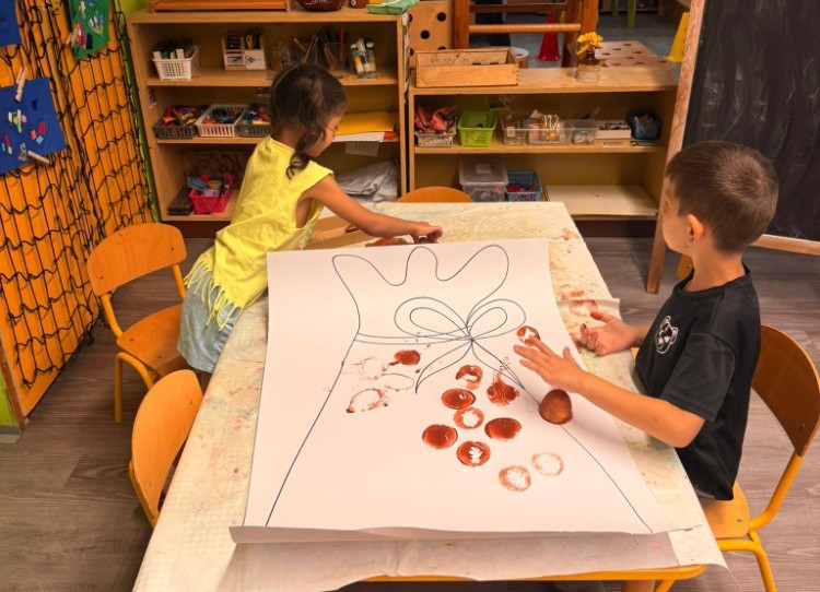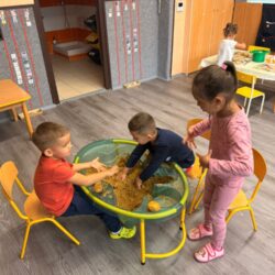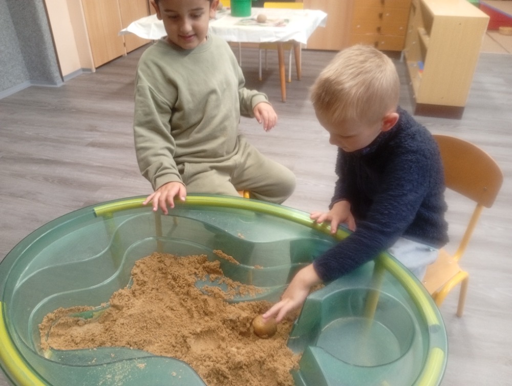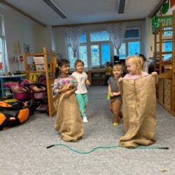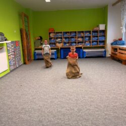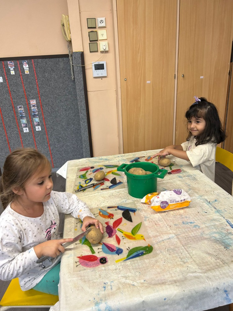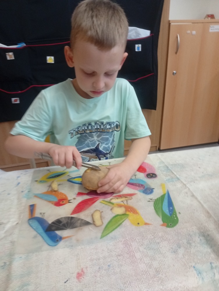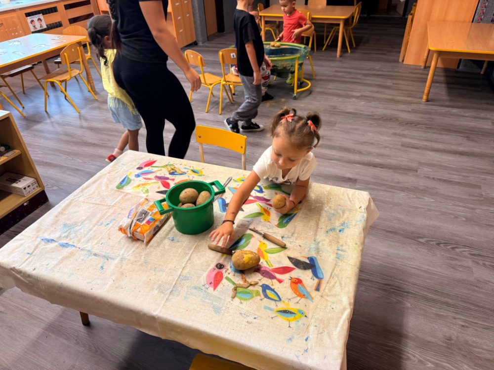 Dnešní dopoledne v naší školce se neslo v duchu Bramboriády. I když nám počasí nepřálo, nic nás nezastavilo – bramborové dobrodružství jsme si užili naplno přímo ve třídách. Na děti čekalo plno úkolů – skákání v pytli, slalom s vozíkem plným brambor, škrabání brambor, obtiskování brambor, ale také třeba hledání traktoru v knížkách nebo objevování brambor v písku. A věřte, že to nebylo vůbec jednoduché! 😊 Děti všechno zvládly s úsměvem a s obrovským nasazením.