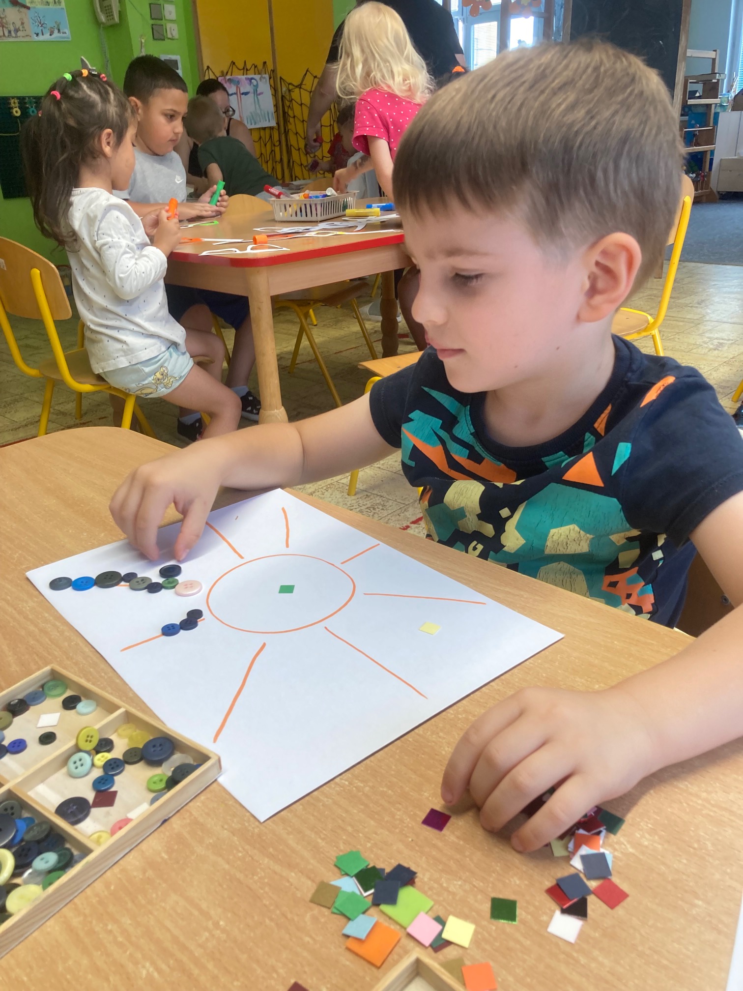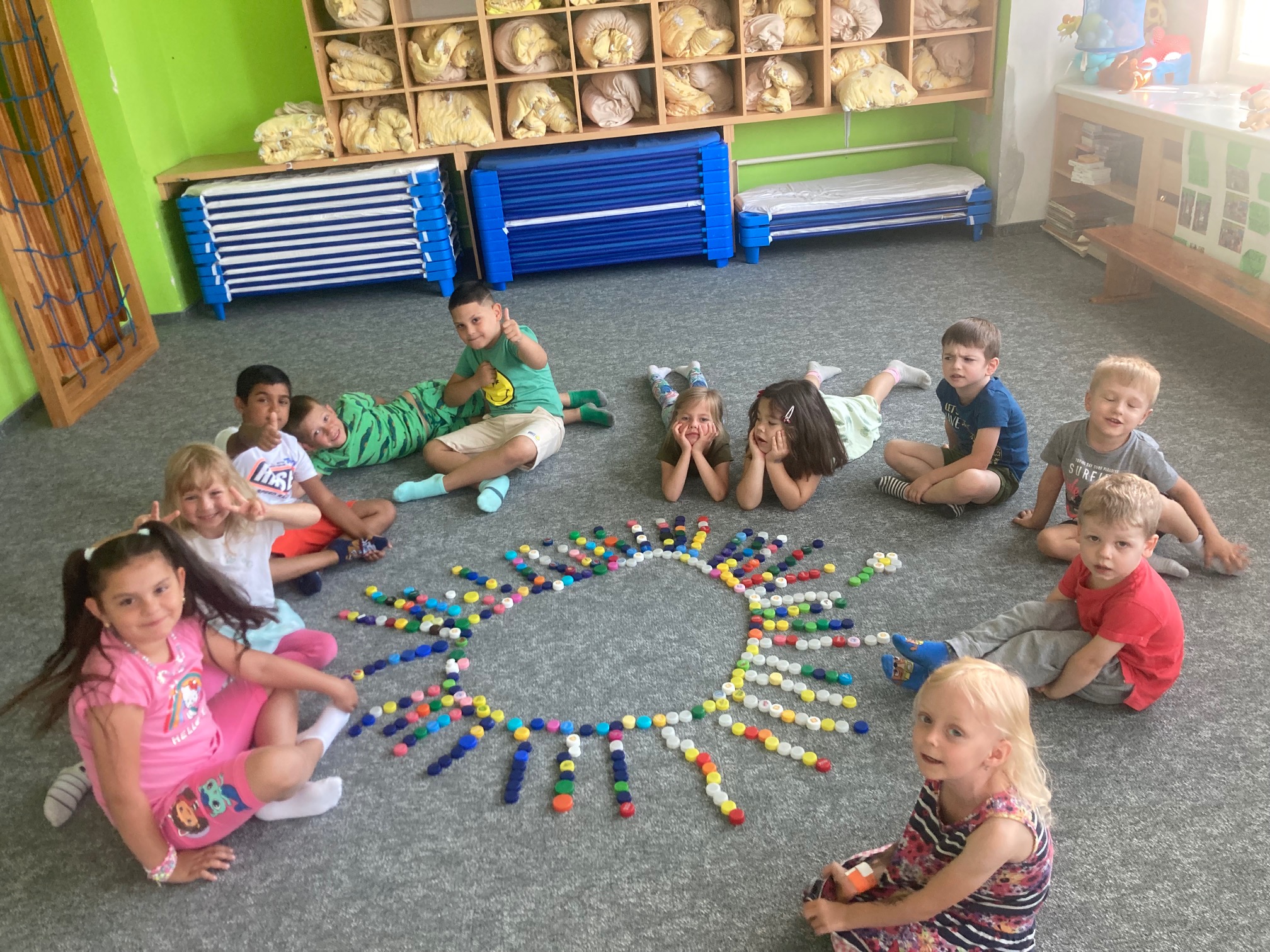 Tento měsíc byl ve znamení vítání léta a čekání na letní prázdniny. Společně s dětmi jsme si povídali o tom, jak léto jako roční období rozeznáme od jiných ročních období. Jak se v létě oblékáme, ale také jak musíme chránit své zdraví. Nechyběla ani zkouška ovoce typického pro toto období – JAHODY, TŘEŠNĚ, MELOUN. 🙂