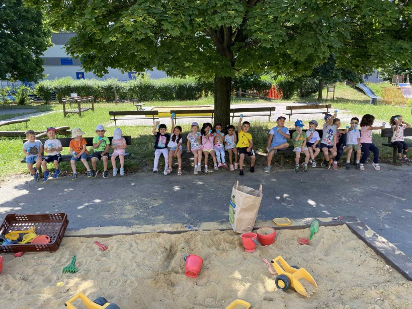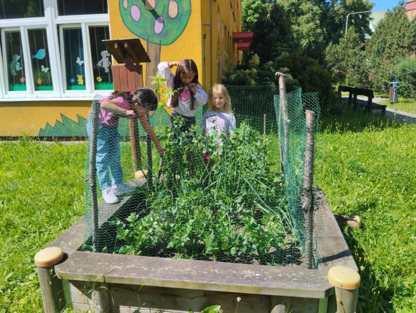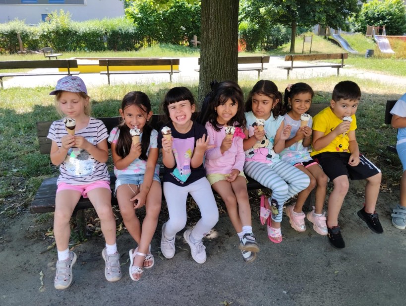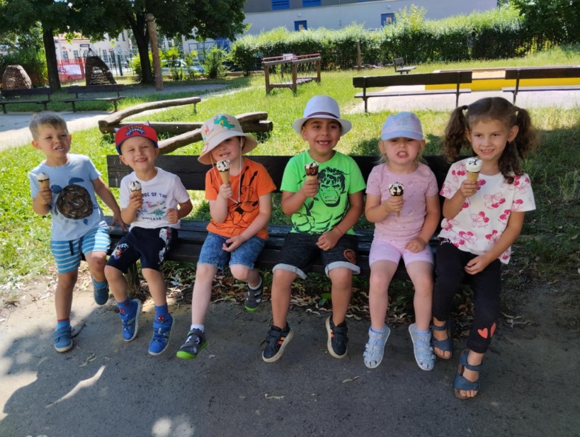 Spoustu času jsme trávili venku na zahradě 🌿, hráli si ⚽, tvořili 🎨, dali si zmrzlinu 🍦 a ochutnali náš vlastnoručně vypěstovaný hrášek. 🌱😋