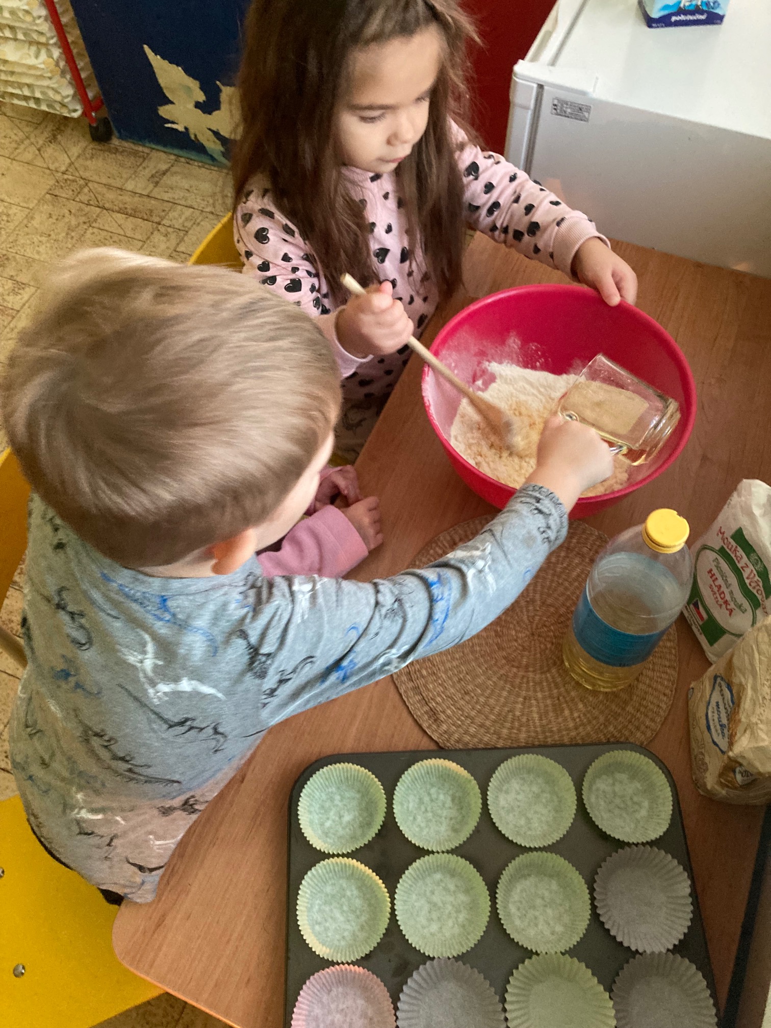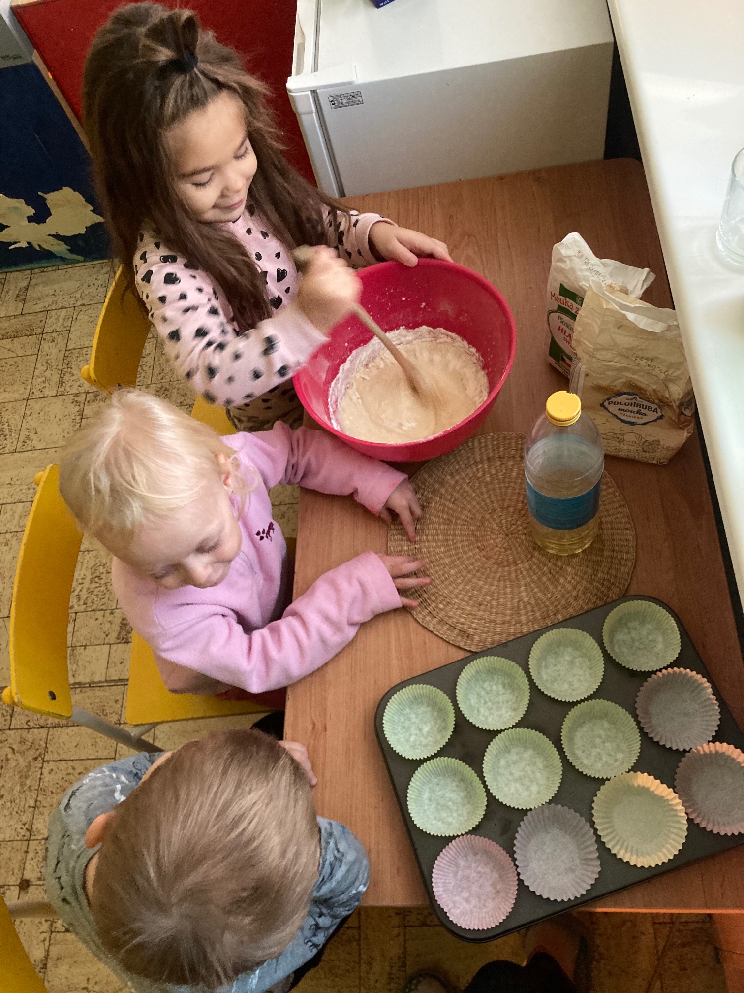 Děti měly možnost vyzkoušet si spoustu zajímavých činností v rámci jednotlivých pohádek. U pohádky O pejskovi a kočičce jsme například věšeli prádlo, přišívali knoflíky a pekli muffiny 🙂 .