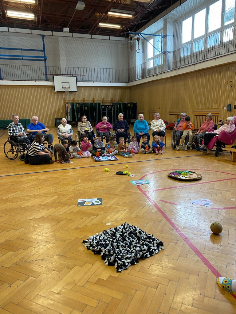 Společně s dětmi jsme se vydali navštívit Domov seniorů. Byli jsme totiž pozvání na Canisterapii s pejskem Sofinkou,