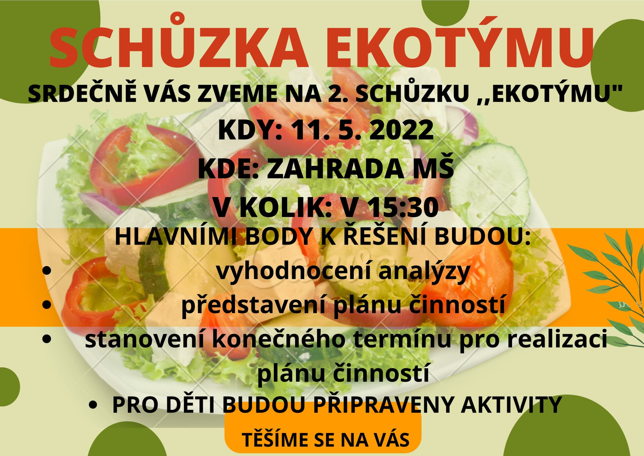 Srdečně zveme na 2. schůzku EKOTÝMU stávající členy, tak uvítáme i nové členy z řad rodičů.