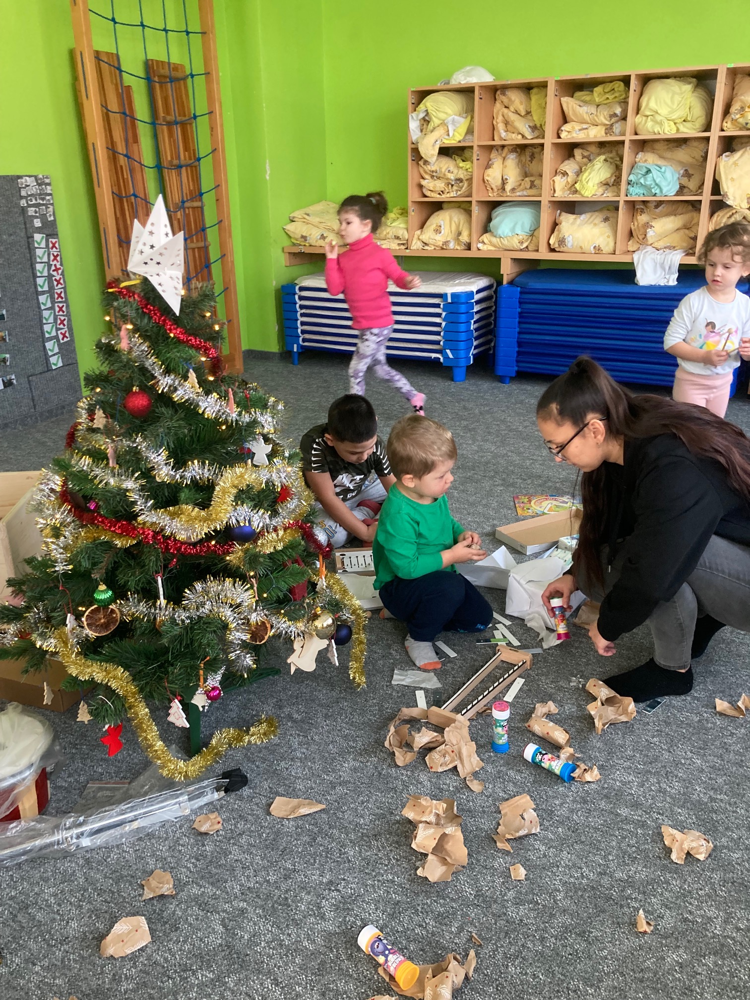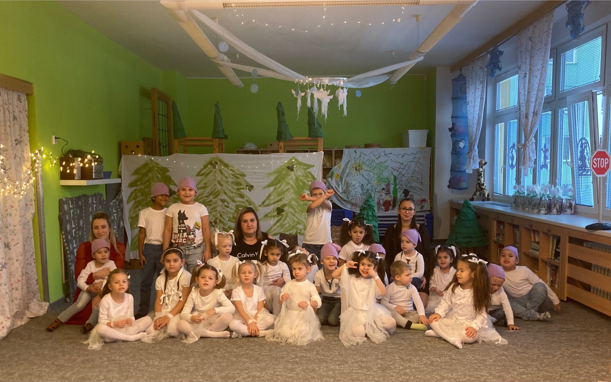 Tento měsíc byl ve znamení vánoční besídky, návštěvy Mikuláše a čekání na Ježíška. Společně s dětmi jsme si navodili krásnou vánoční atmosféru, prozkoumali jsme město a obdivovali jeho vánoční stromečky a výzdobu. Užívali si sněhové nadílky, zpívali koledy, navštívili Domov pro seniory, pekli cukroví a vyzkoušeli si vánoční tradice.