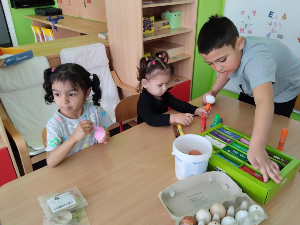 V rámci velikonočního tvoření si děti vyrobily velikonočního zajíčka 🐰na špejli a také vajíčko ze samotvrdnoucí hmoty. Barvily si i vyfouknutá velikonoční vajíčka. Ve třídě je čekalo hledání schovaných vajíček, které děti moc bavilo. Rodiče si mezitím vytvořili svůj velikonoční záhonek v květináči.