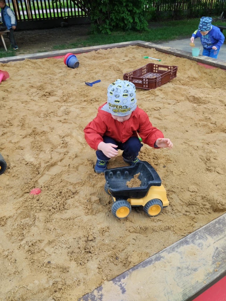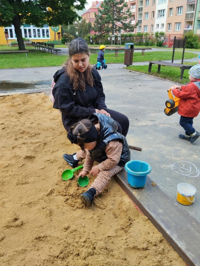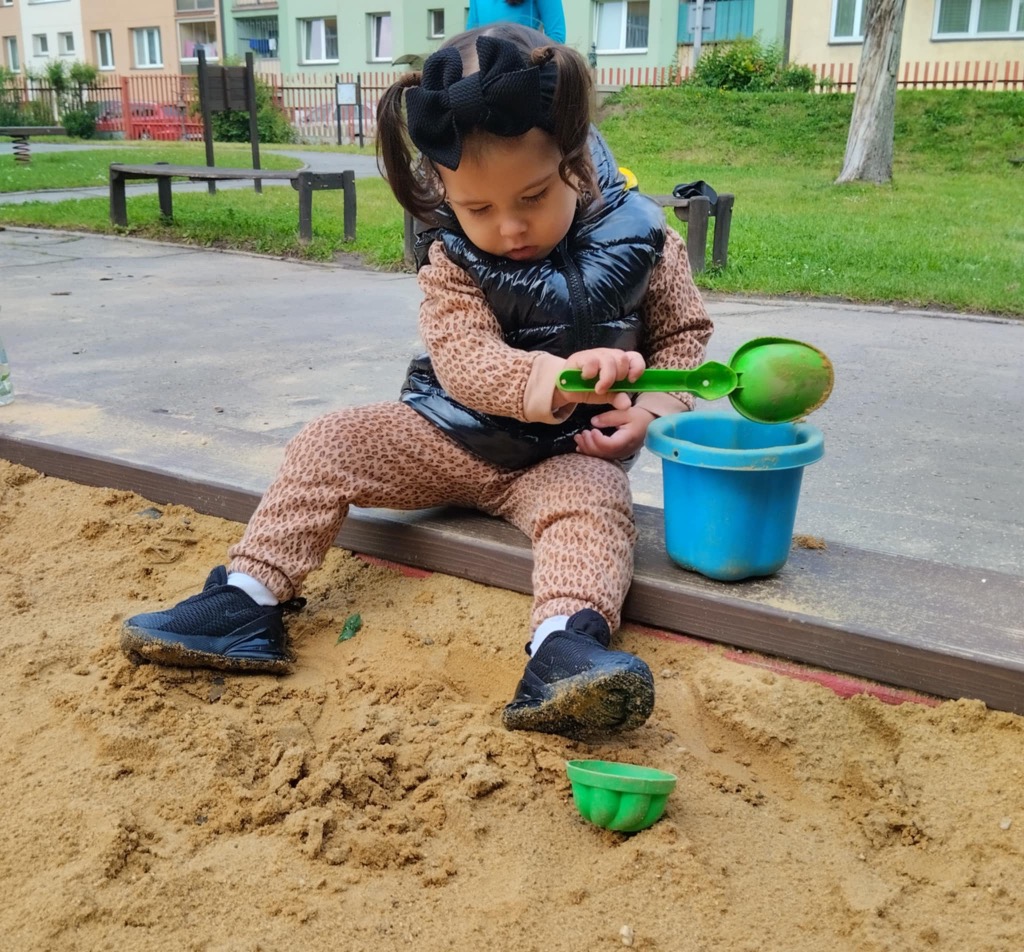 Po aktivitách jsme si užívali čas venku na zahradě – hráli si na písku, jezdili na odrážedlech a užívali si čas na zahradě.