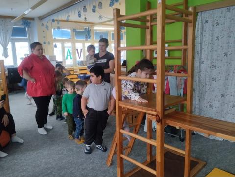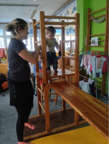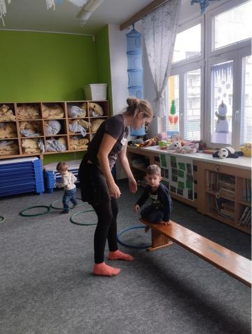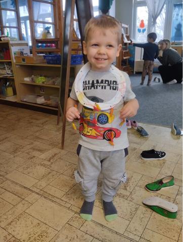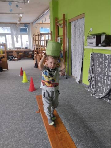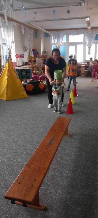 kreslili jsme obličej kamaráda a v pohybu jsme si prošli překážkovou dráhu, druhý týden nás čekal Masopust