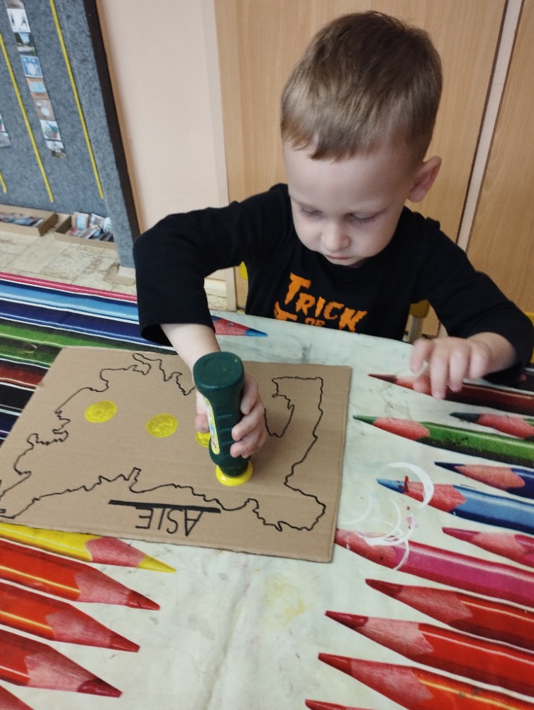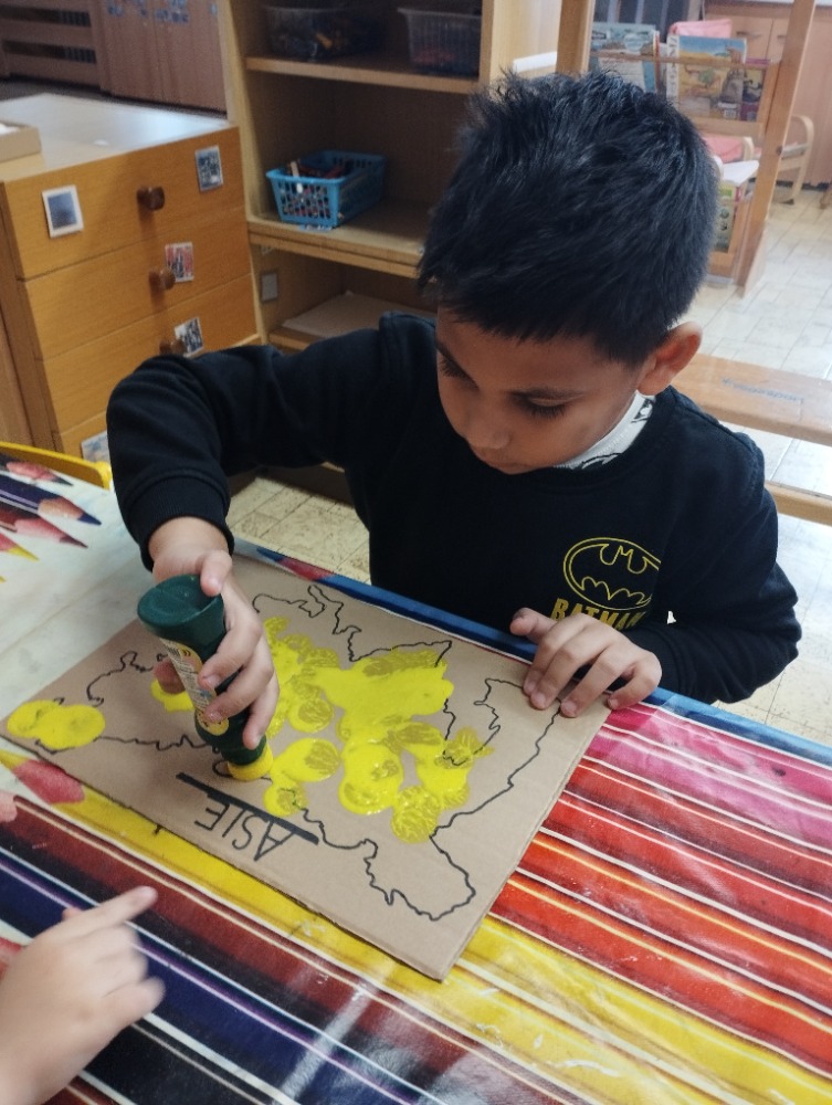 S dětmi jsme se vydali po stopách Asie. Ukázali jsme si na mapě a taky na glóbusu , kde leží Asie, Čína, Japonsko, Indie a Mongolsko. Děti postavily Velkou Čínskou zeď a také ji zbouraly 😊 , vyrobily si vějíř, vyzkoušely se najíst čínskými hůlkami, ochutnaly čínský čaj, hledaly zvířátka v rýži a spoustu dalších činností u kterých poznávaly kulturu této Země.