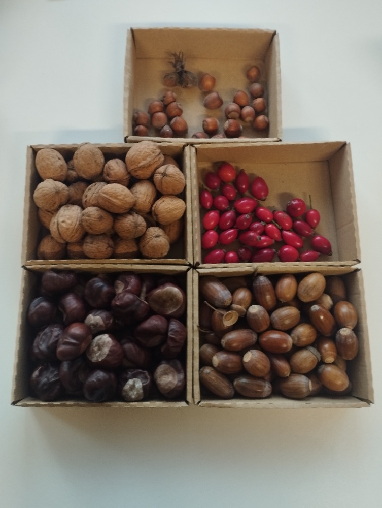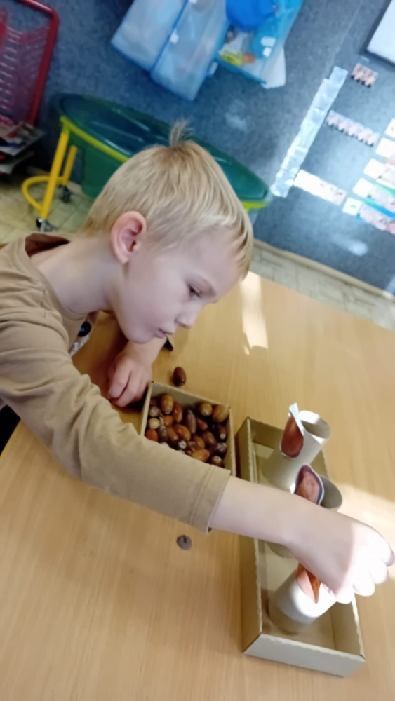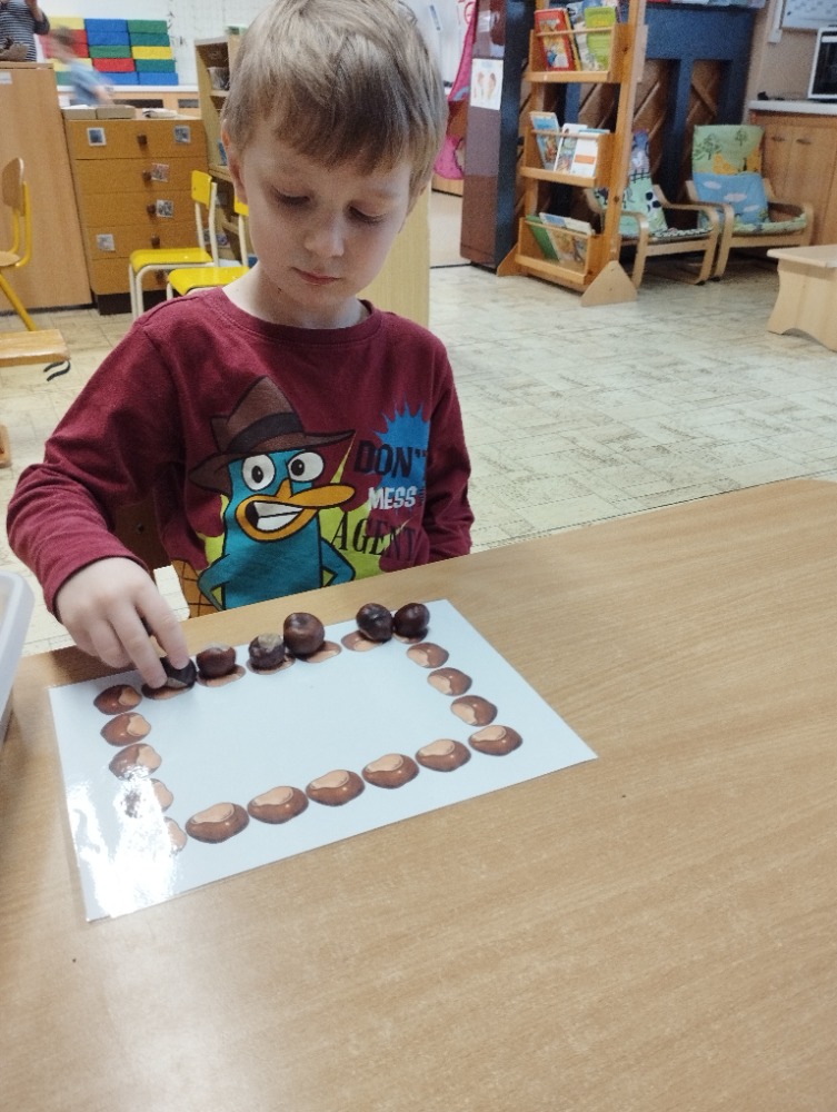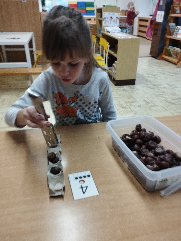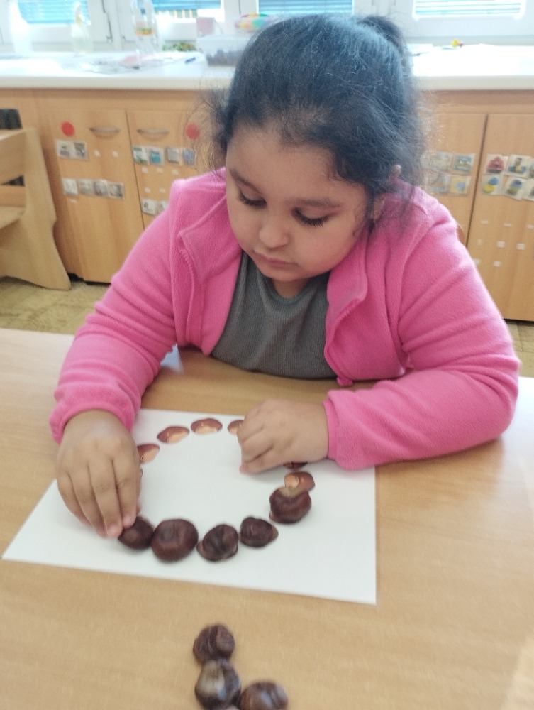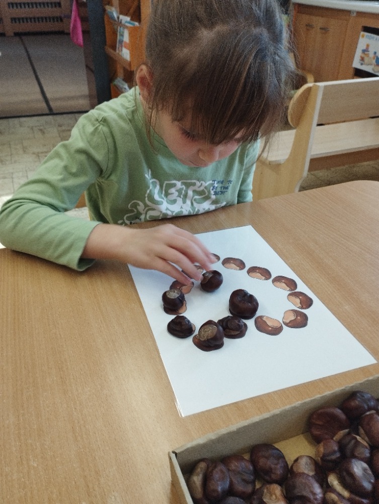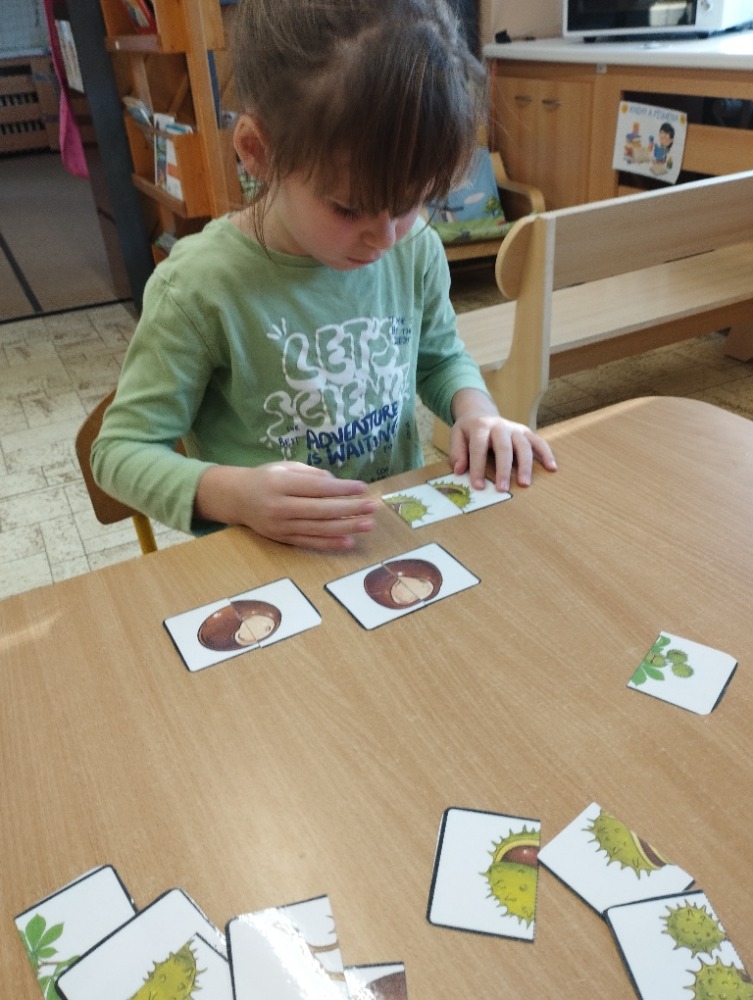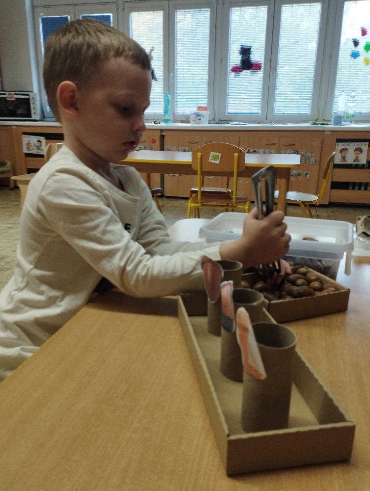 Naším dalším tématem byly dary podzimu-kaštany, šišky, žaludy, šípky a ořechy. Nejprve jsme si s dětmi ukázali, jak vypadají. Plody děti roztřídily, vyzkoušely si je vzít a přenést pomocí kleští, vkládaly kaštany podle počtu puntíků, zazpívaly a zahrály na bubínek Běží liška k táboru a seznámily se s hudebním nástrojem a to trianglem, promasírovaly chodidla chůzí po kaštanech a spoustu dalších činností. Také jsme využili hezkého počasí na zahradě MŠ a nezapomněli si hrát 😊
