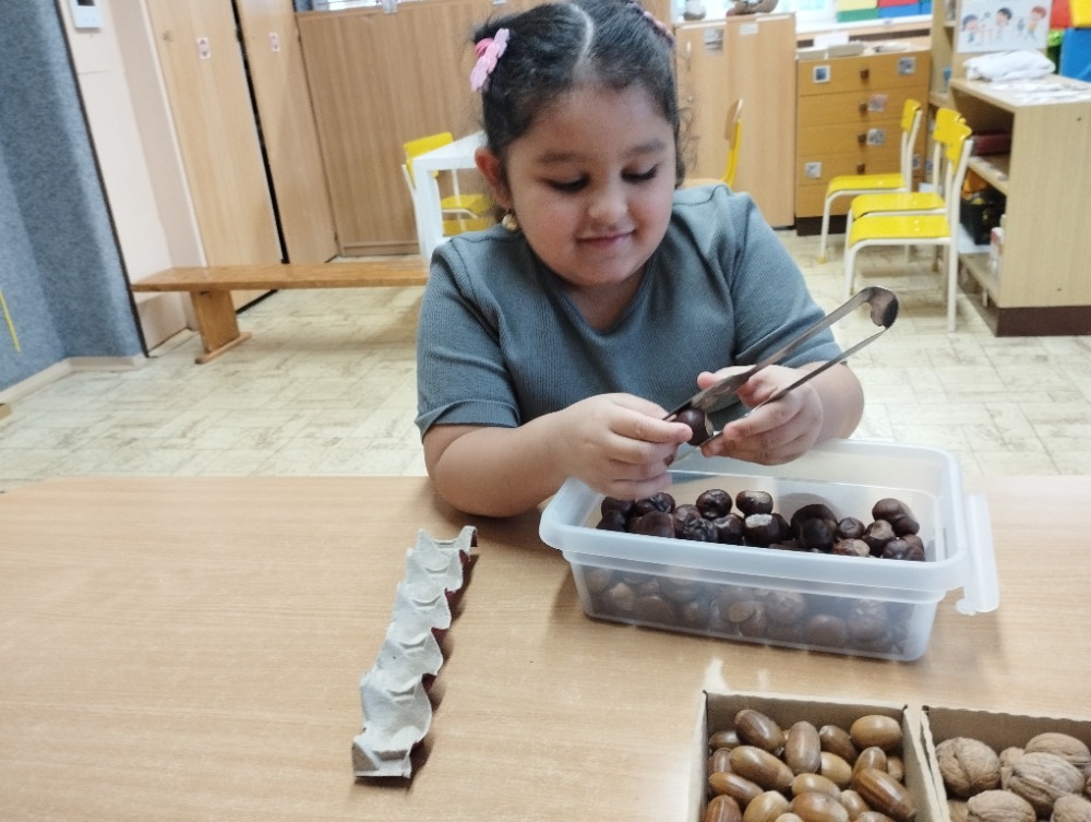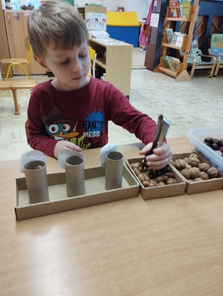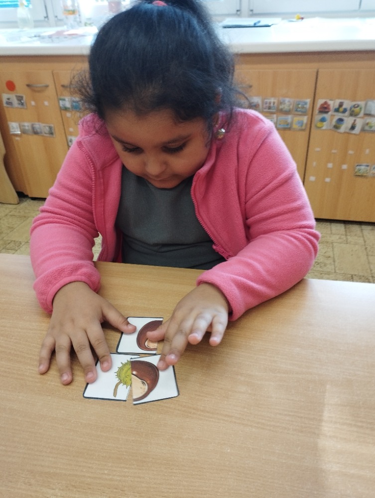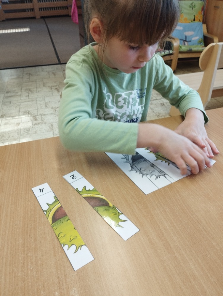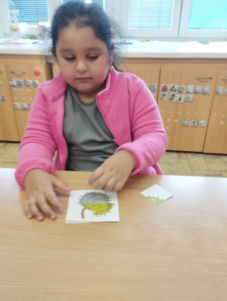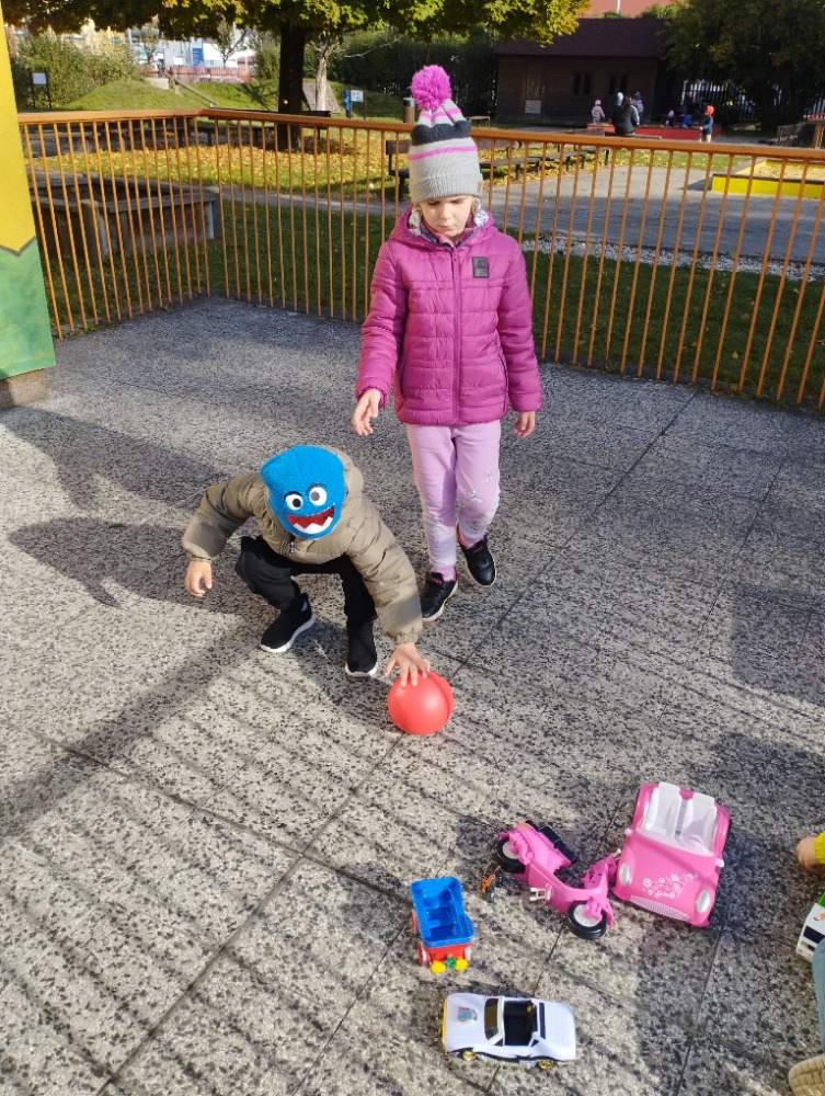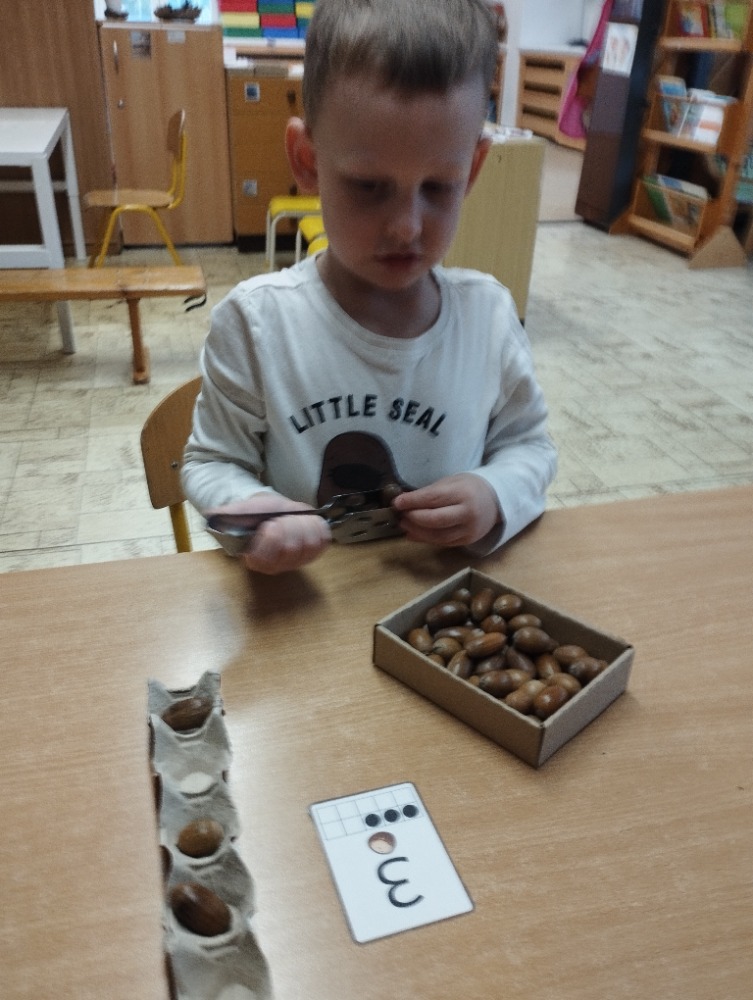 Naším dalším tématem byly dary podzimu-kaštany, šišky, žaludy, šípky a ořechy. Nejprve jsme si s dětmi ukázali, jak vypadají. Plody děti roztřídily, vyzkoušely si je vzít a přenést pomocí kleští, vkládaly kaštany podle počtu puntíků, zazpívaly a zahrály na bubínek Běží liška k táboru a seznámily se s hudebním nástrojem a to trianglem, promasírovaly chodidla chůzí po kaštanech a spoustu dalších činností. Také jsme využili hezkého počasí na zahradě MŠ a nezapomněli si hrát 😊