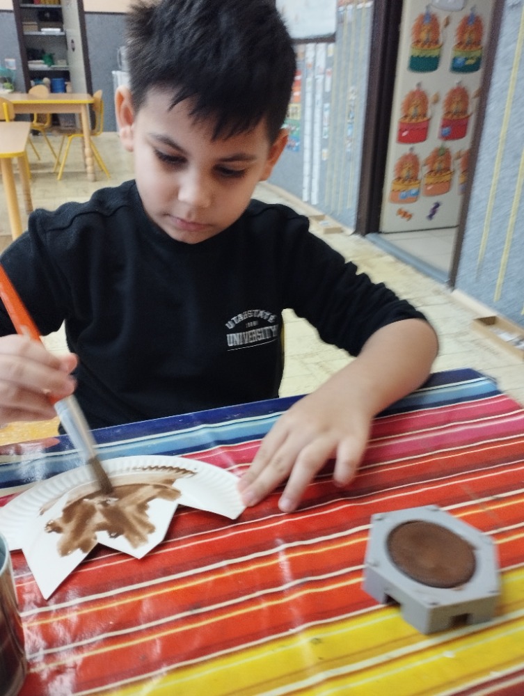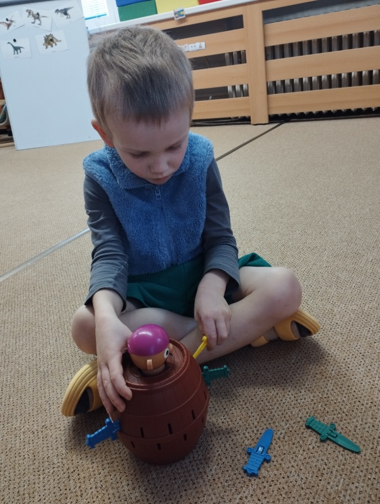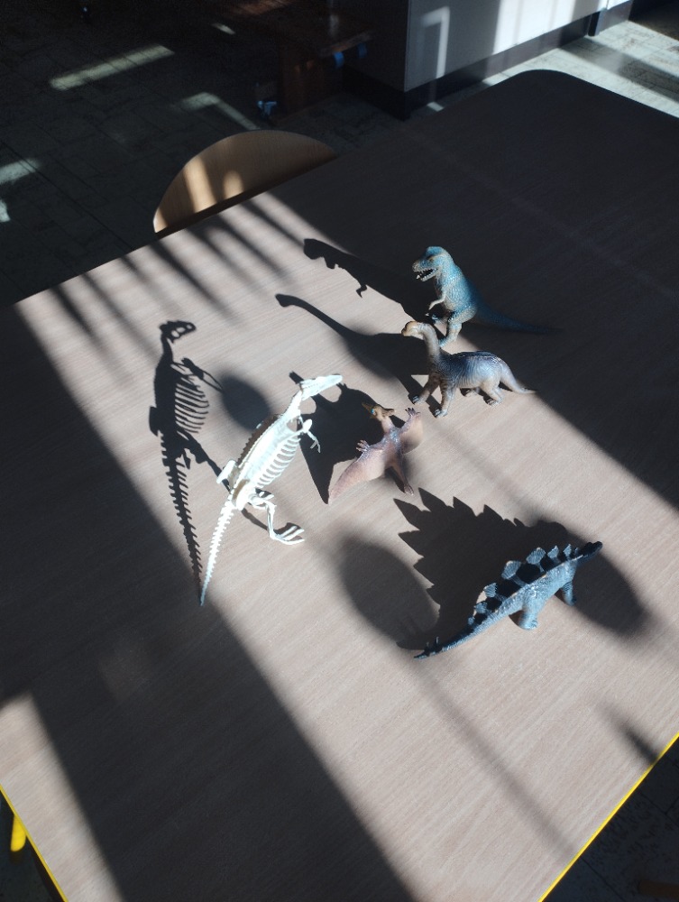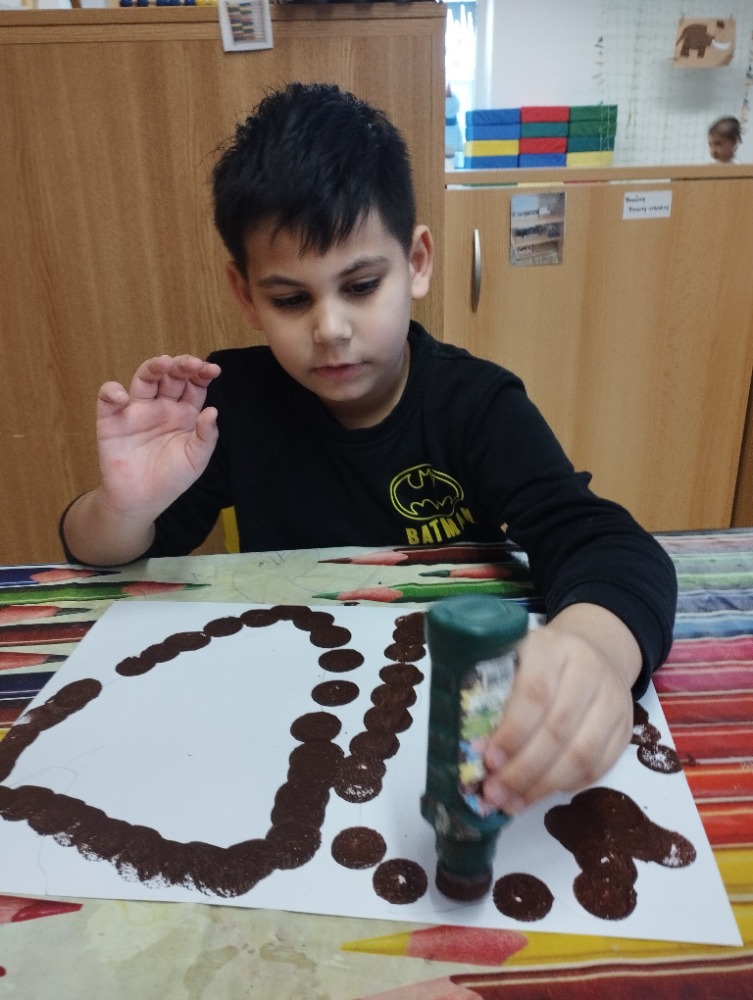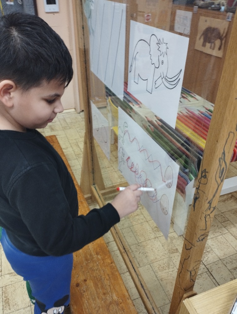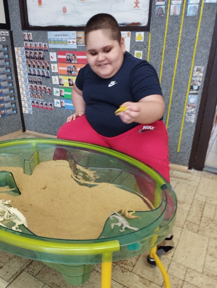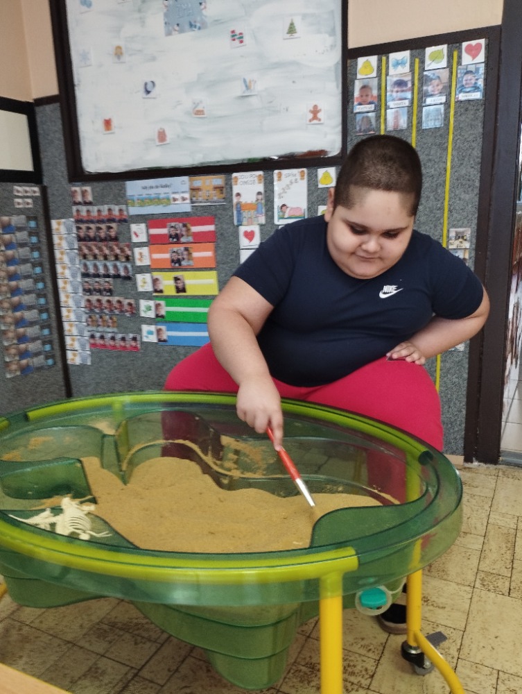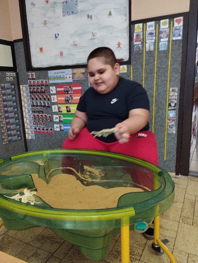 Tento týden jsme se vydali s dětmi po stopách dinosaurů. Ukázali jsme si na demonstračních obrázcích jak vypadají dinosauři a poslechli jejich zvuky. Děti si vyzkoušely jak se v takových dinosauřích tlapách chodí, zahrály si na archeology – hledaly kosti dinosaurů v písku, vyrobily dinosaura ve vajíčku, jeho stopu, vyzkoušely stínohru s dinosaury a spoustu dalších činností. Děti prozkoumaly zahradu a také nechyběla procházka. Ve třídě nás navštívili dinosauři se kterými nemohla chybět fotka 😊