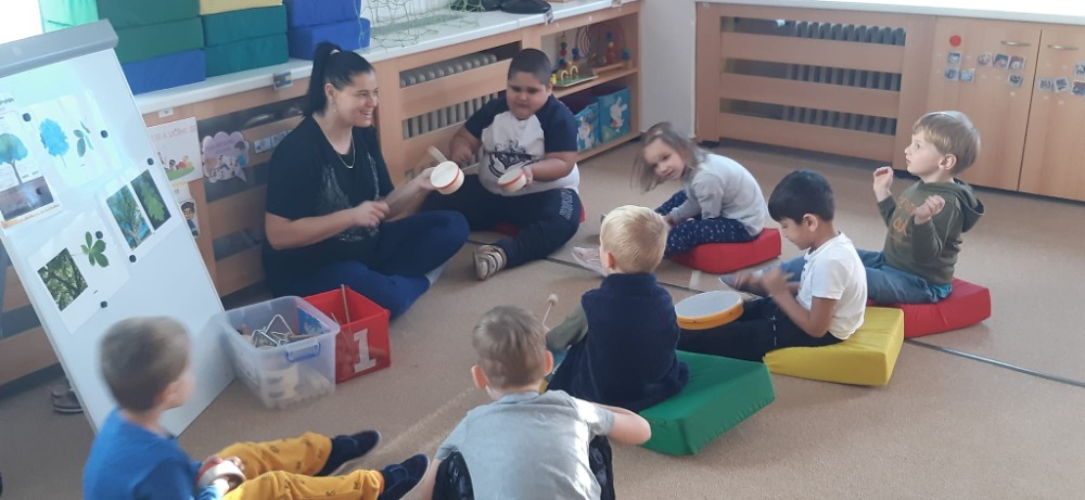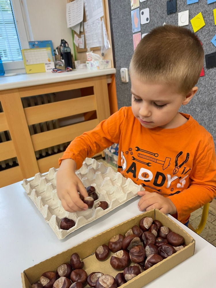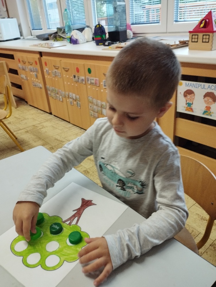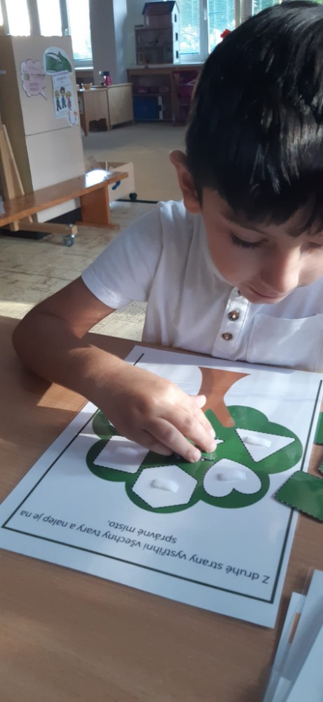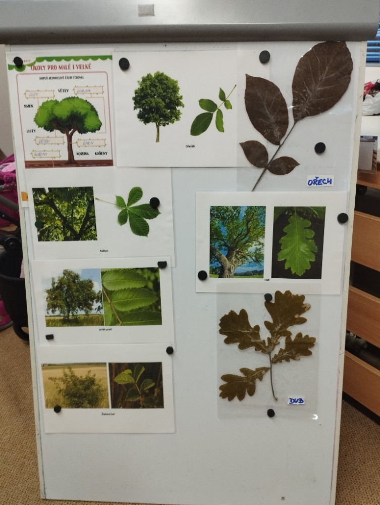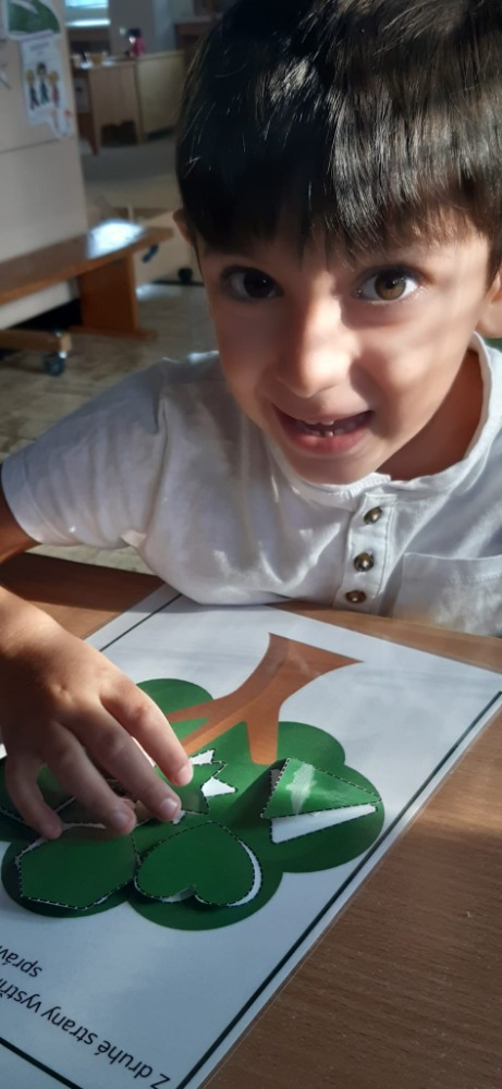 Naše další téma se týkalo Stromů a keřů. Na začátku týdne nám počasí nepřálo, ale to nám vůbec nevadilo 😊 . Využili jsme velké míče, na kterých děti skákaly, prolézaly překážkovou dráhu a smyslový chodníček… Děti poznávaly stromy, keře a také jejich listy. Ukázali jsme si jak vypadá strom – ořech, dub, kaštan, jeřáb a šípkový keř. A proč jsou pro nás stromy důležité. Také jsme si ukázali jak vypadají jejich listy a děti si je také mohly prozkoumat nejen zrakem ale také hmatem. Zkoumaly jakou mají barvu, tvar, velikost, jak padají a jak šumí při větru, přiřazovaly stíny, motaly listy bavlnko. Také jsme si zahráli na hudební nástroje…