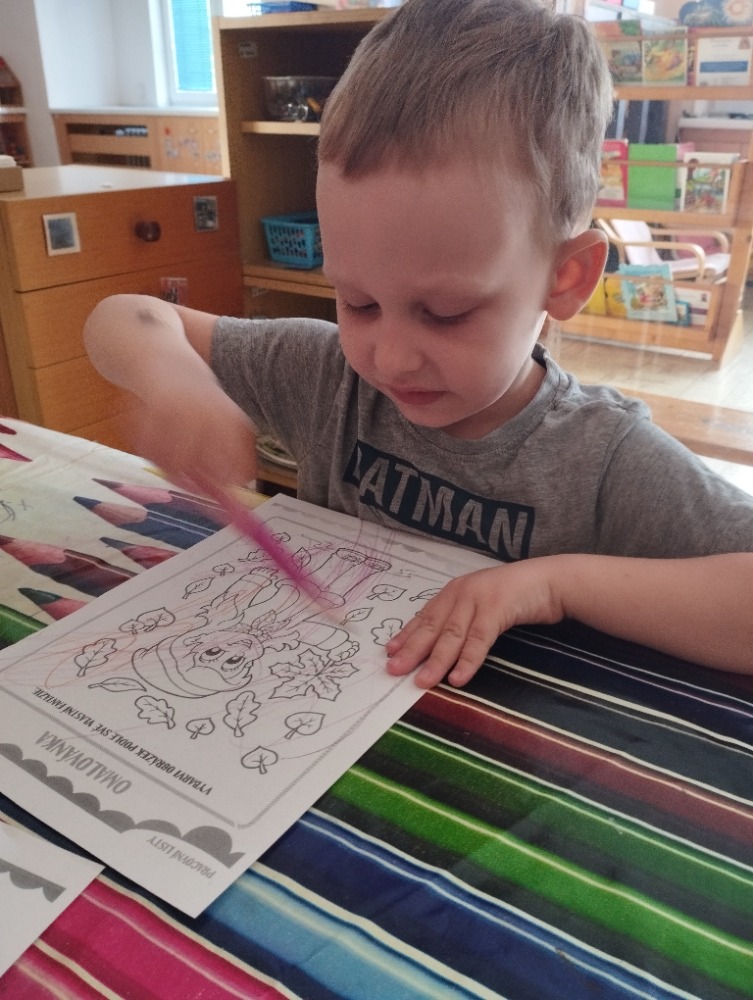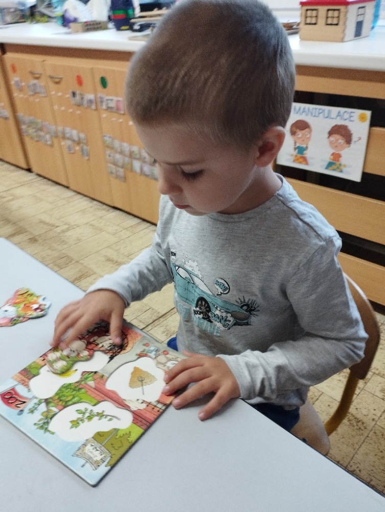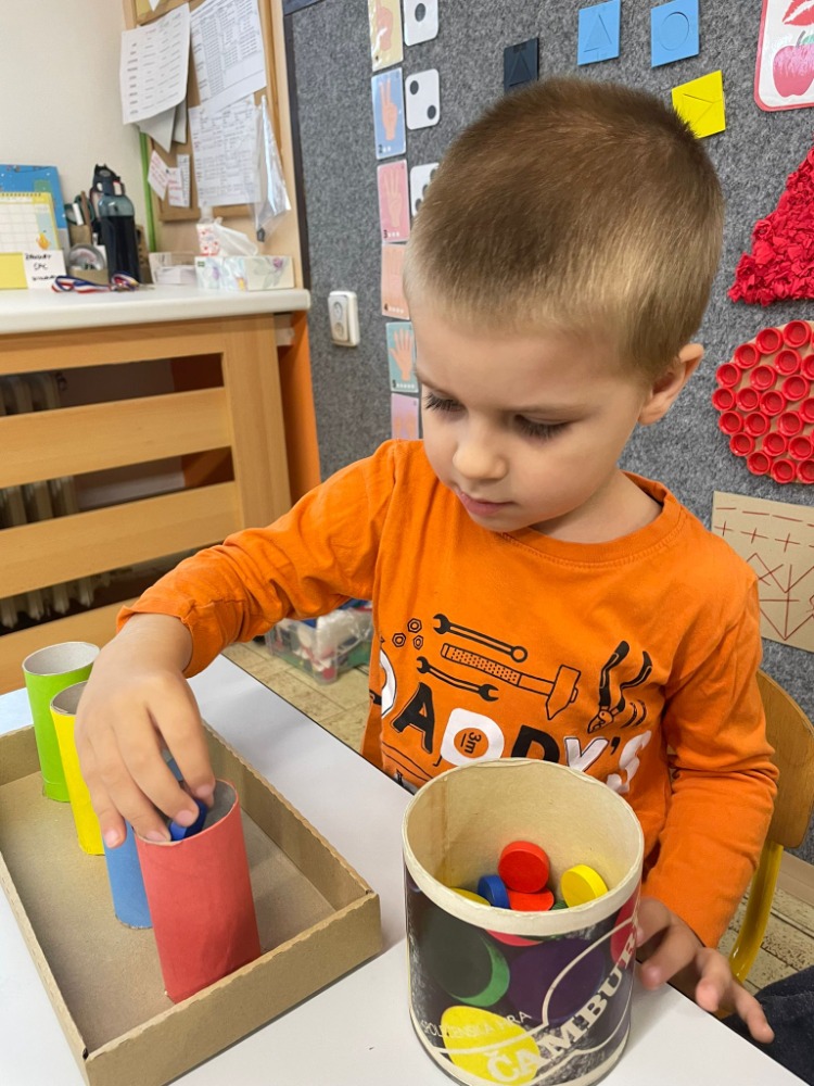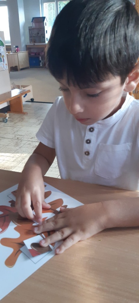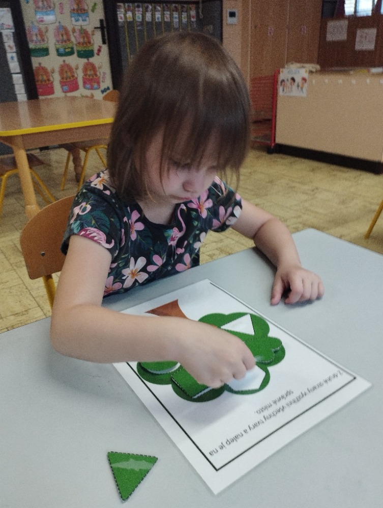 Naše další téma se týkalo Stromů a keřů. Na začátku týdne nám počasí nepřálo, ale to nám vůbec nevadilo 😊 . Využili jsme velké míče, na kterých děti skákaly, prolézaly překážkovou dráhu a smyslový chodníček… Děti poznávaly stromy, keře a také jejich listy. Ukázali jsme si jak vypadá strom – ořech, dub, kaštan, jeřáb a šípkový keř. A proč jsou pro nás stromy důležité. Také jsme si ukázali jak vypadají jejich listy a děti si je také mohly prozkoumat nejen zrakem ale také hmatem. Zkoumaly jakou mají barvu, tvar, velikost, jak padají a jak šumí při větru, přiřazovaly stíny, motaly listy bavlnko. Také jsme si zahráli na hudební nástroje…