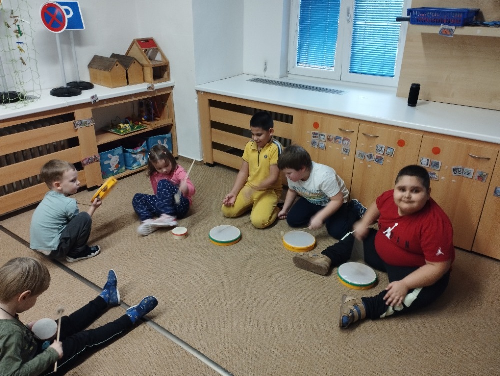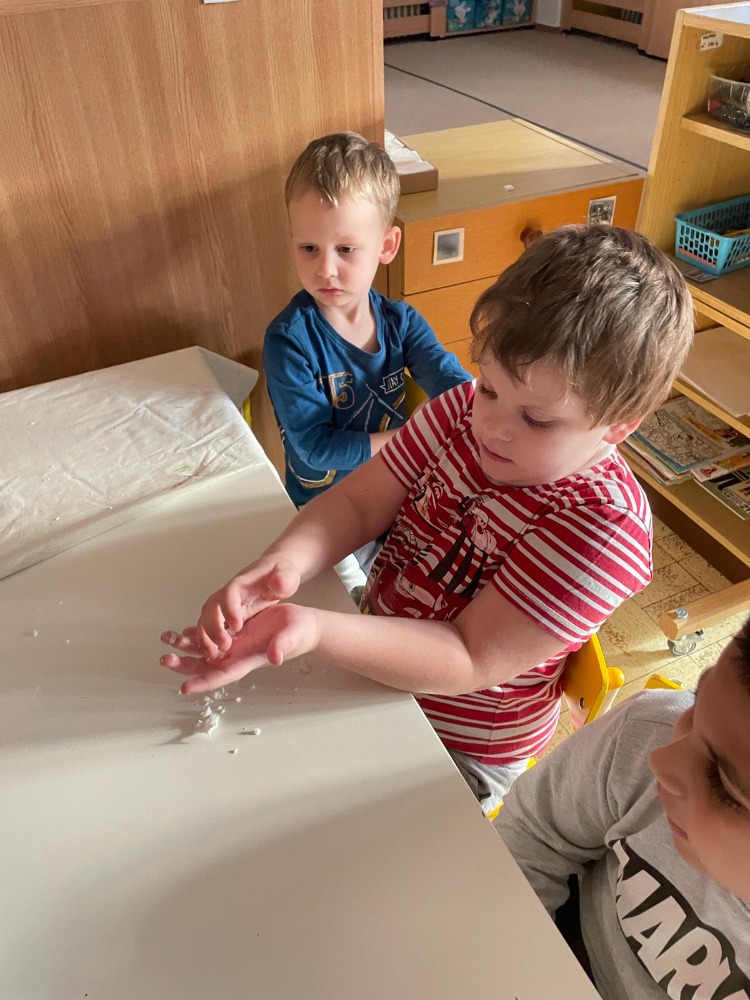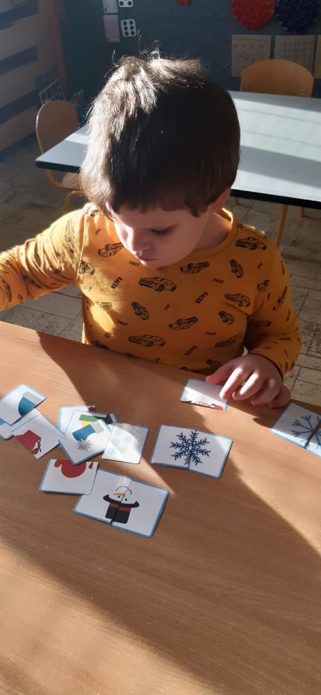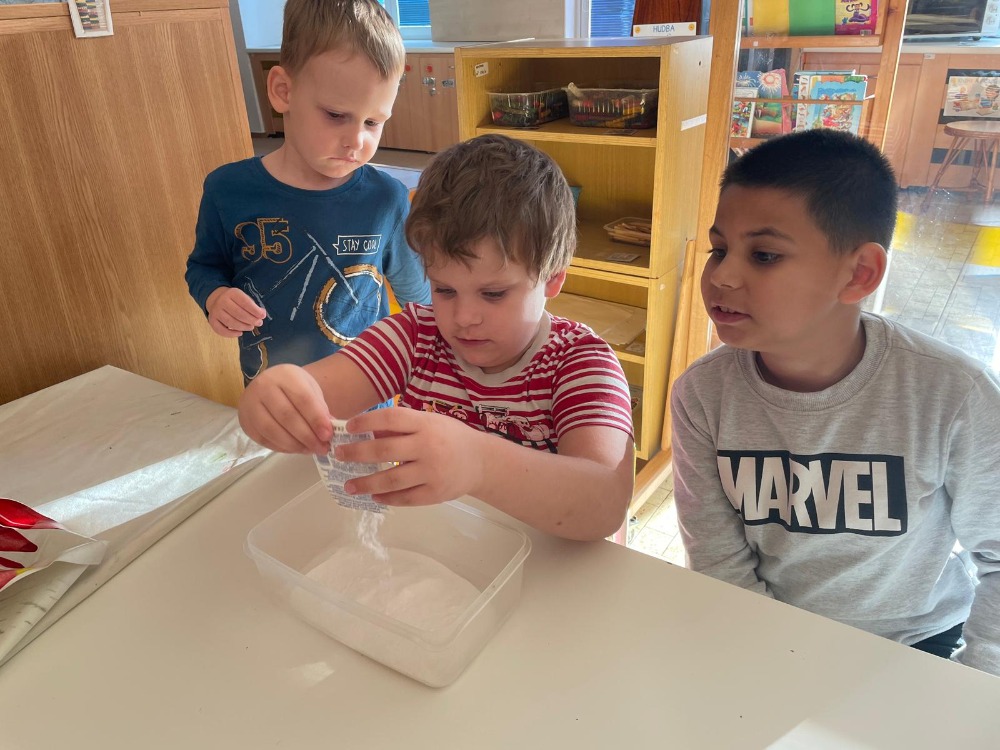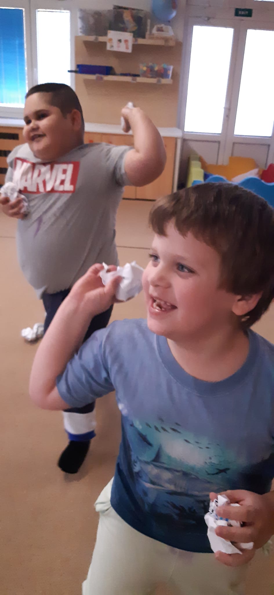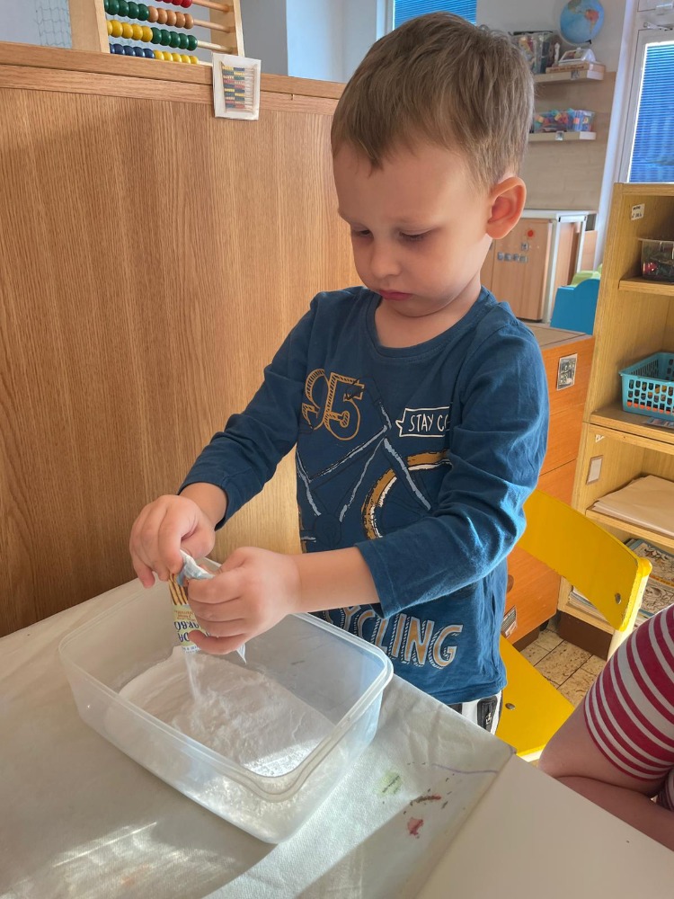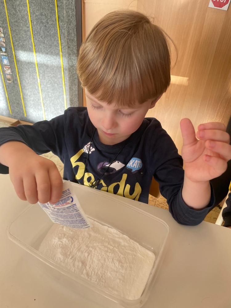 Dalším naším tématem byla Zima. S dětmi jsme si vyrobily hrníček na čaj, upekly si zimní skořicové sušenky a protože nám ještě nenapadl venku sníh, děti vyrobily svůj sníh, ze kterého mohly postavit sněhuláka 😊 a neměly zmrzlé ruce 😊 Také si děti vyrobily sněhové koule se kterými si následně zahrály bitvu 😊 Zahrály si na bubínky a vyzkoušely hru na triangl a spoustu dalších aktivit a činností. Nezapomněly si hrát a relaxovat. Zkrátka si užily zimu jak se patří 😊