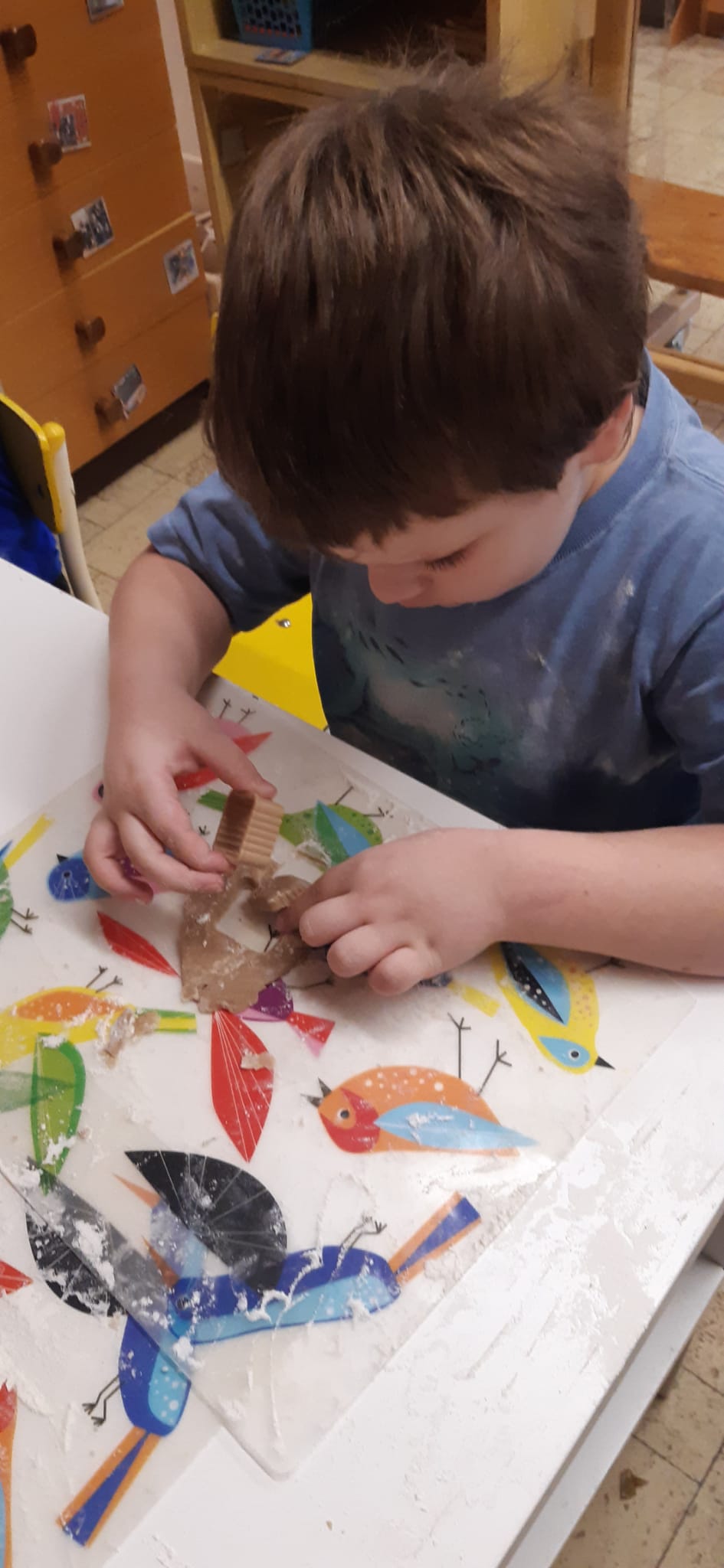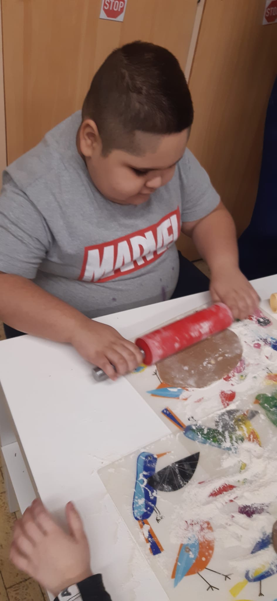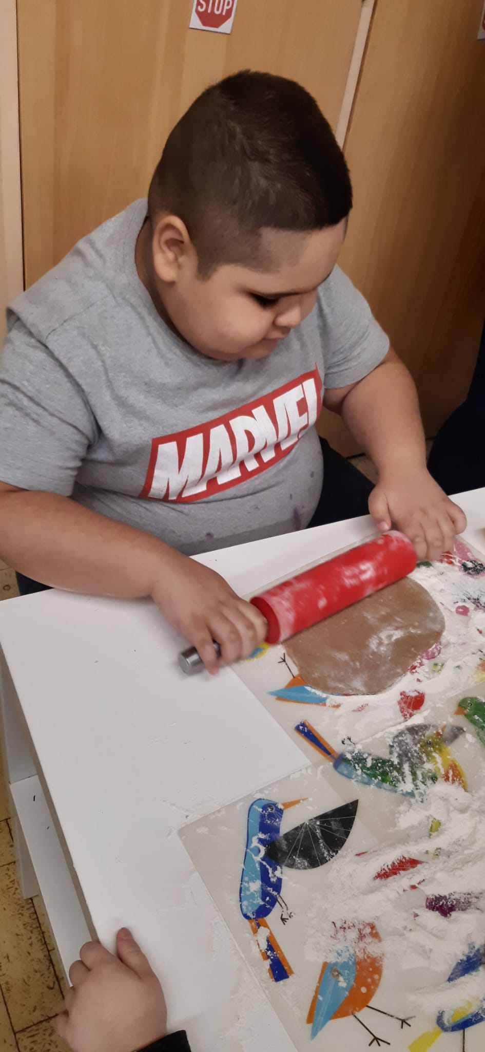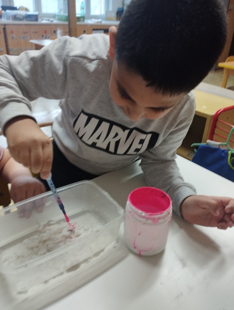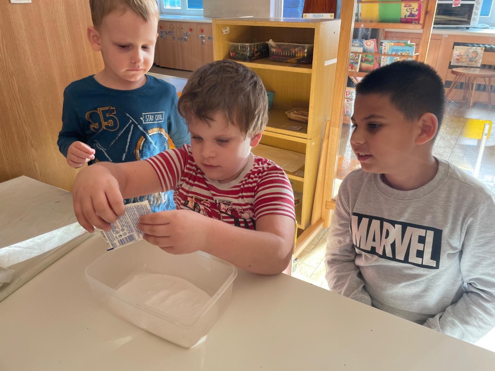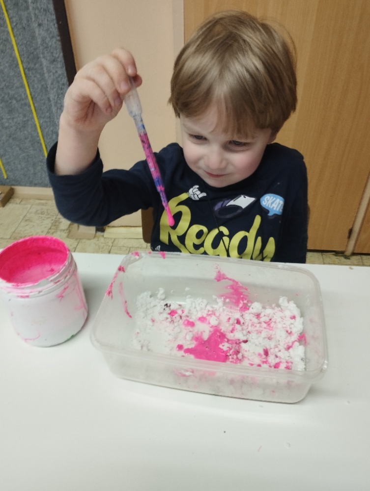 Dalším naším tématem byla Zima. S dětmi jsme si vyrobily hrníček na čaj, upekly si zimní skořicové sušenky a protože nám ještě nenapadl venku sníh, děti vyrobily svůj sníh, ze kterého mohly postavit sněhuláka 😊 a neměly zmrzlé ruce 😊 Také si děti vyrobily sněhové koule se kterými si následně zahrály bitvu 😊 Zahrály si na bubínky a vyzkoušely hru na triangl a spoustu dalších aktivit a činností. Nezapomněly si hrát a relaxovat. Zkrátka si užily zimu jak se patří 😊