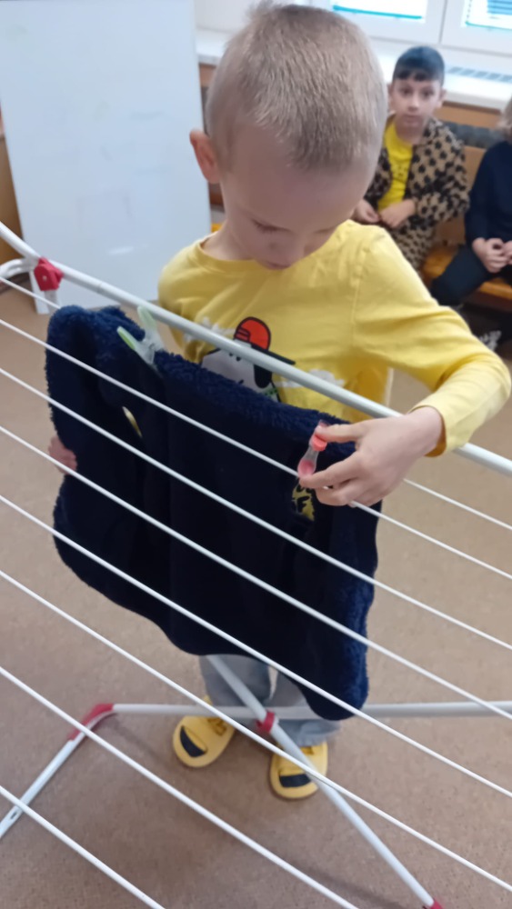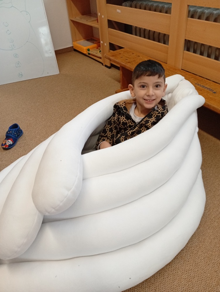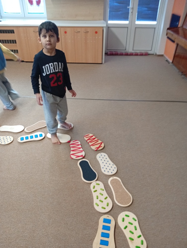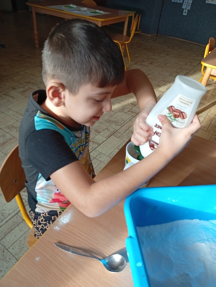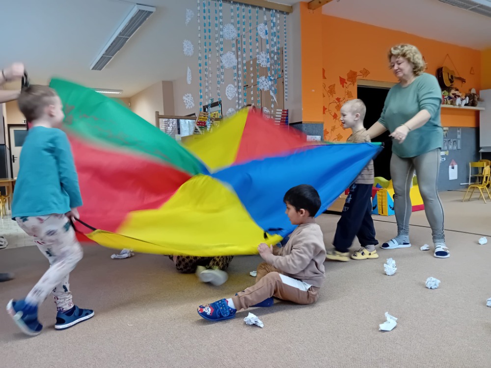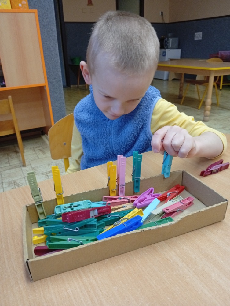 Zimní oblečení, to bylo další téma, které nás s dětmi čekalo. Děti přiřazovaly barvy, třídily zimní oblečení, zkusily si ho také pověsit, pracovaly s různým materiálem (bavlnou, vlnou, vatou, krepovým papírem), počítaly knoflíky, vyráběly sníh a také ho zkusily obarvit, prošly hmatovým chodníčkem, překážkovou dráhou… Také hrály na hudební nástroje, kterými vyjádřily zimu. Nezapomněly si hrát, relaxovat a navštívit saunu. Počasí nám přálo a tak mohly děti prozkoumat zahradu MŠ.