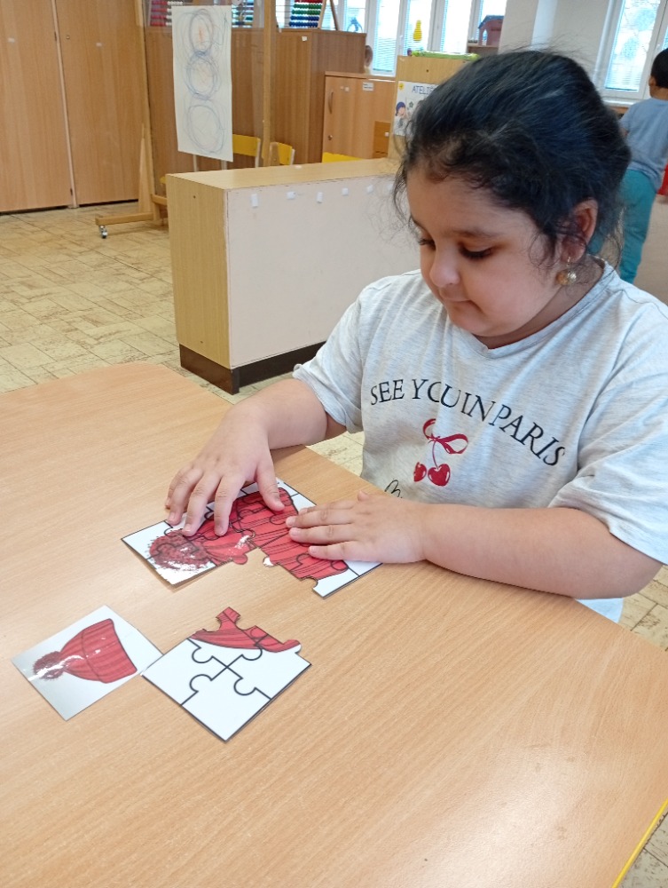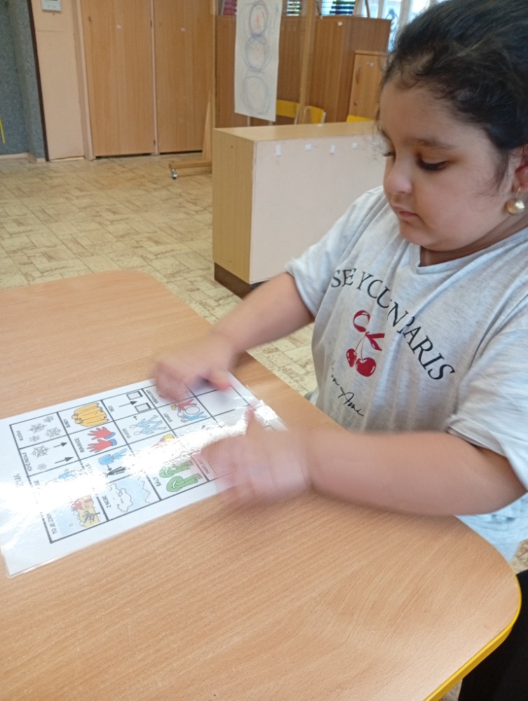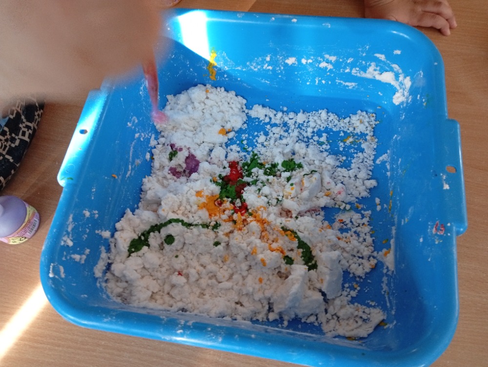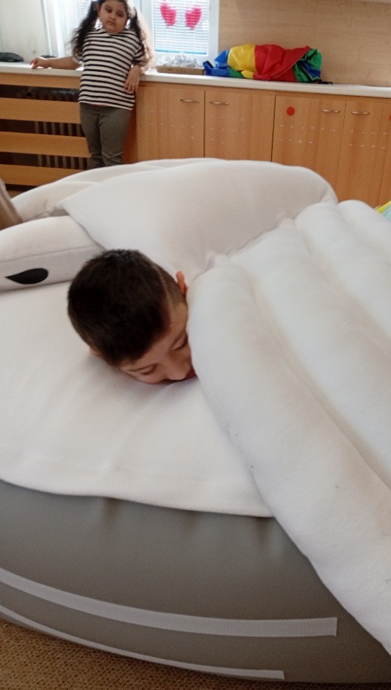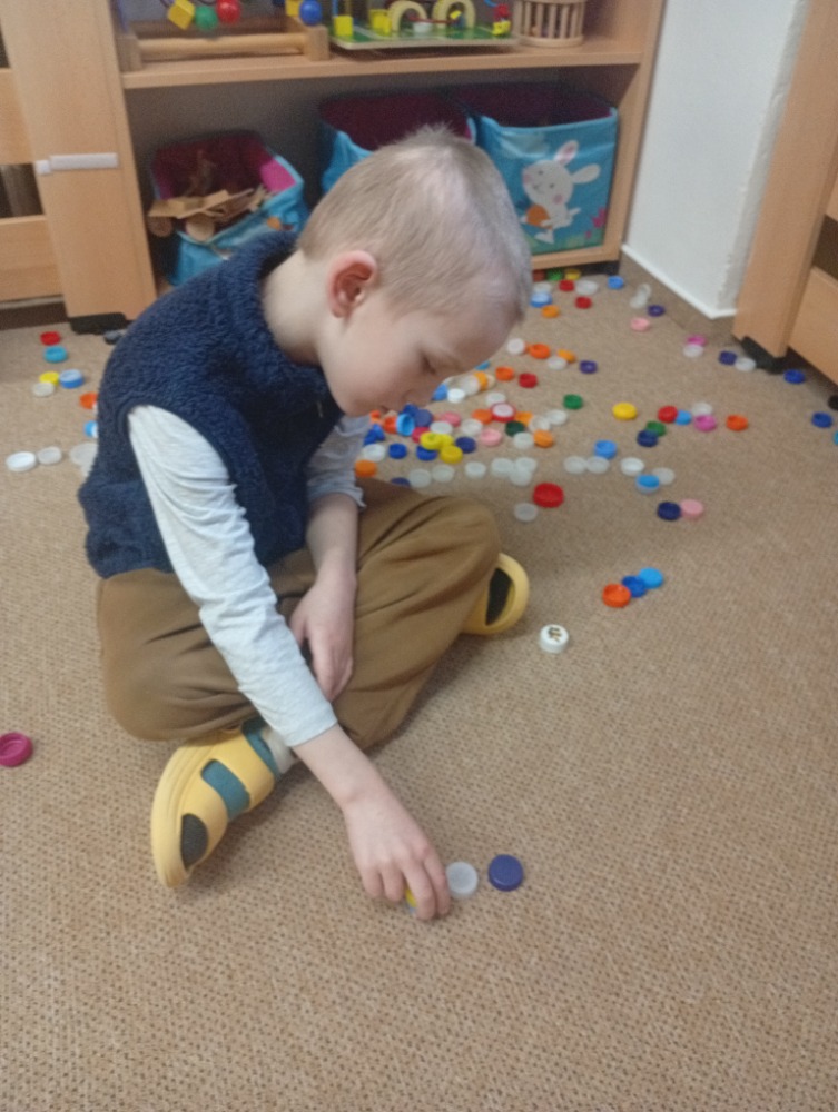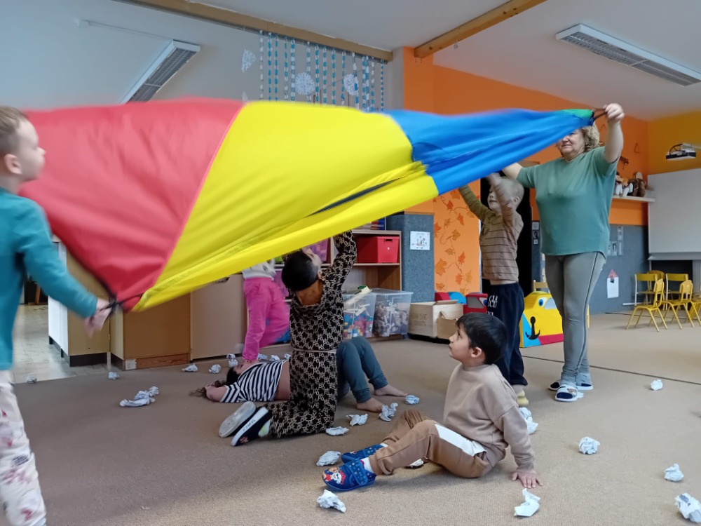 Zimní oblečení, to bylo další téma, které nás s dětmi čekalo. Děti přiřazovaly barvy, třídily zimní oblečení, zkusily si ho také pověsit, pracovaly s různým materiálem (bavlnou, vlnou, vatou, krepovým papírem), počítaly knoflíky, vyráběly sníh a také ho zkusily obarvit, prošly hmatovým chodníčkem, překážkovou dráhou… Také hrály na hudební nástroje, kterými vyjádřily zimu. Nezapomněly si hrát, relaxovat a navštívit saunu. Počasí nám přálo a tak mohly děti prozkoumat zahradu MŠ.