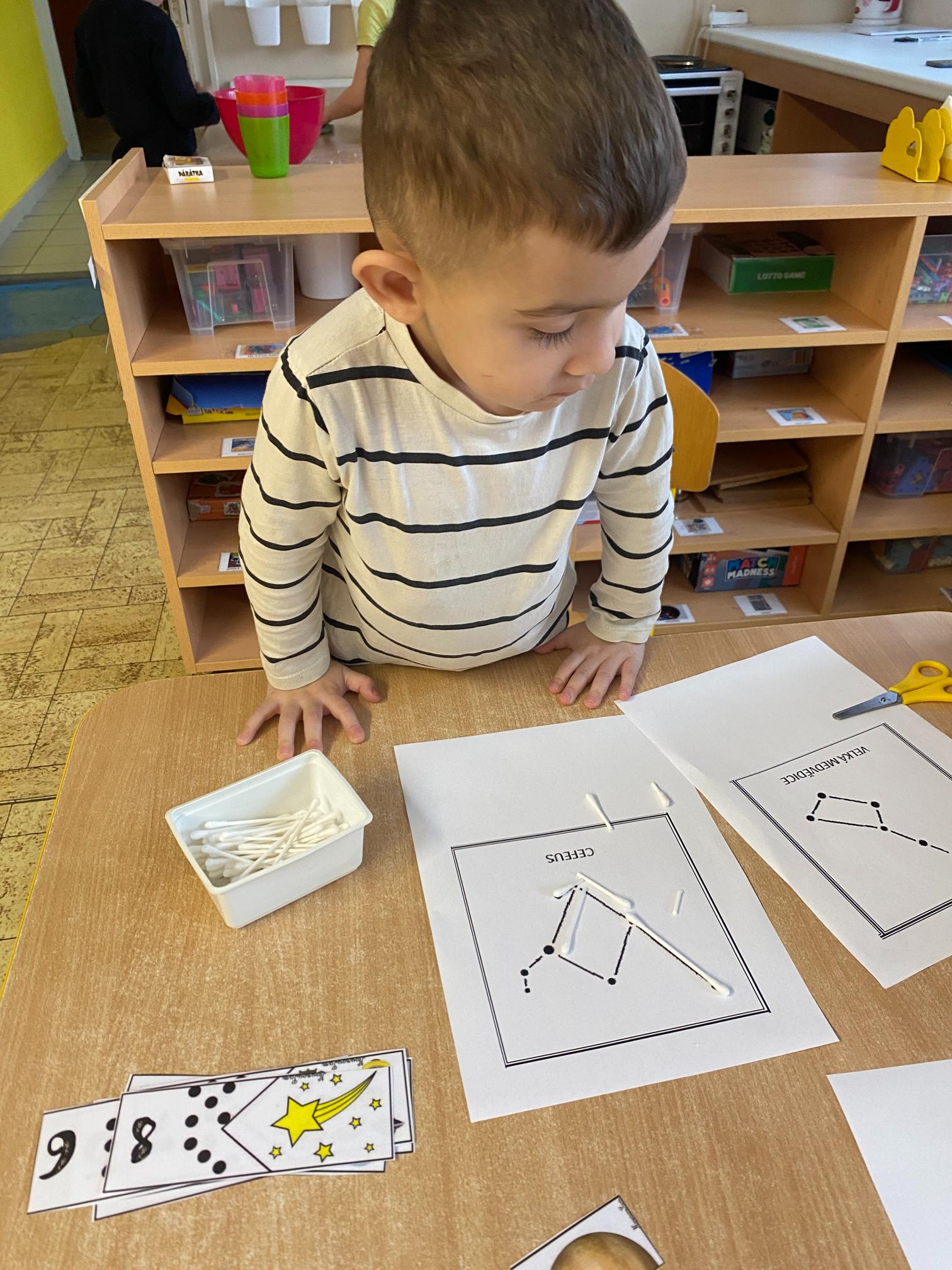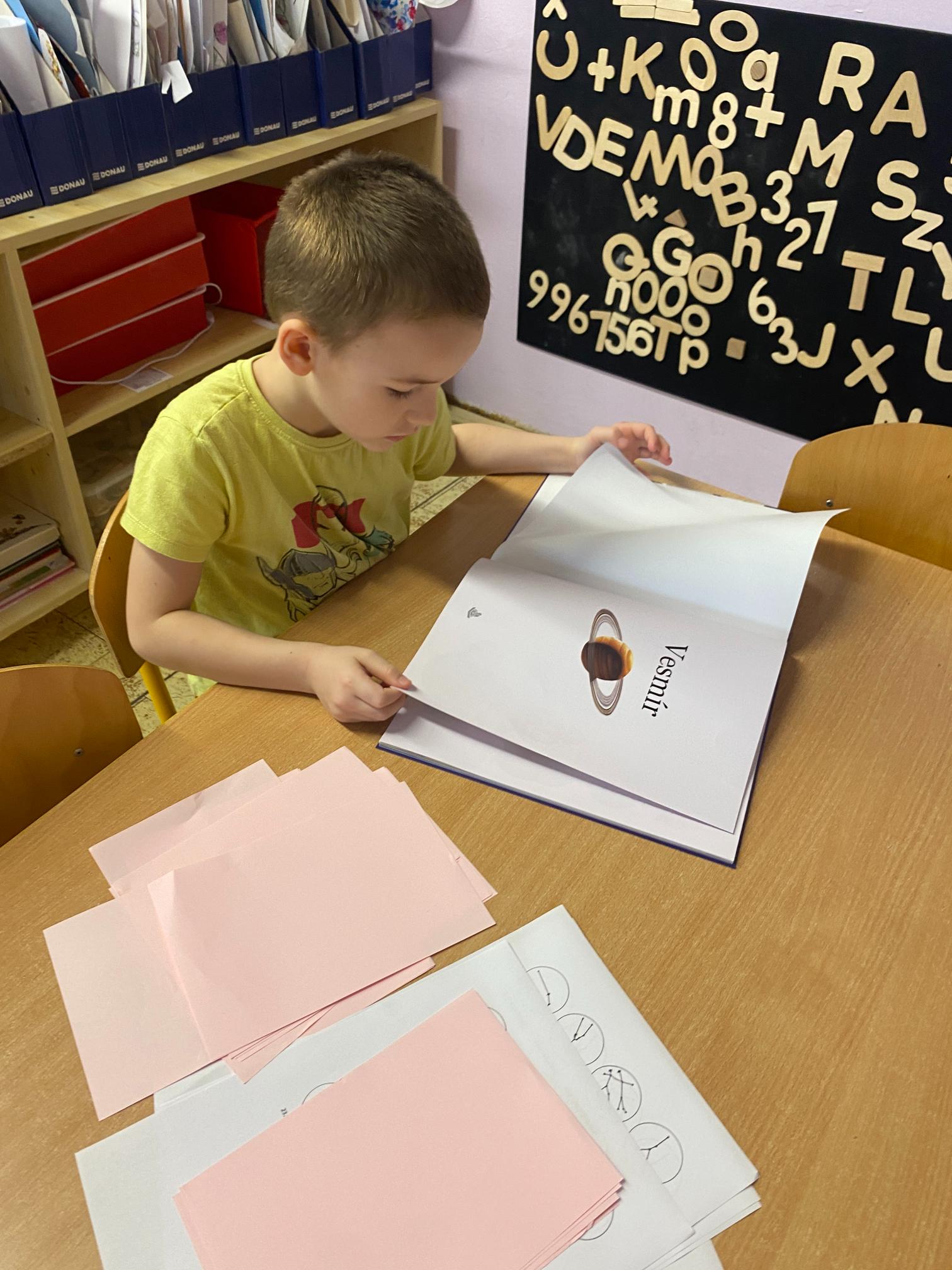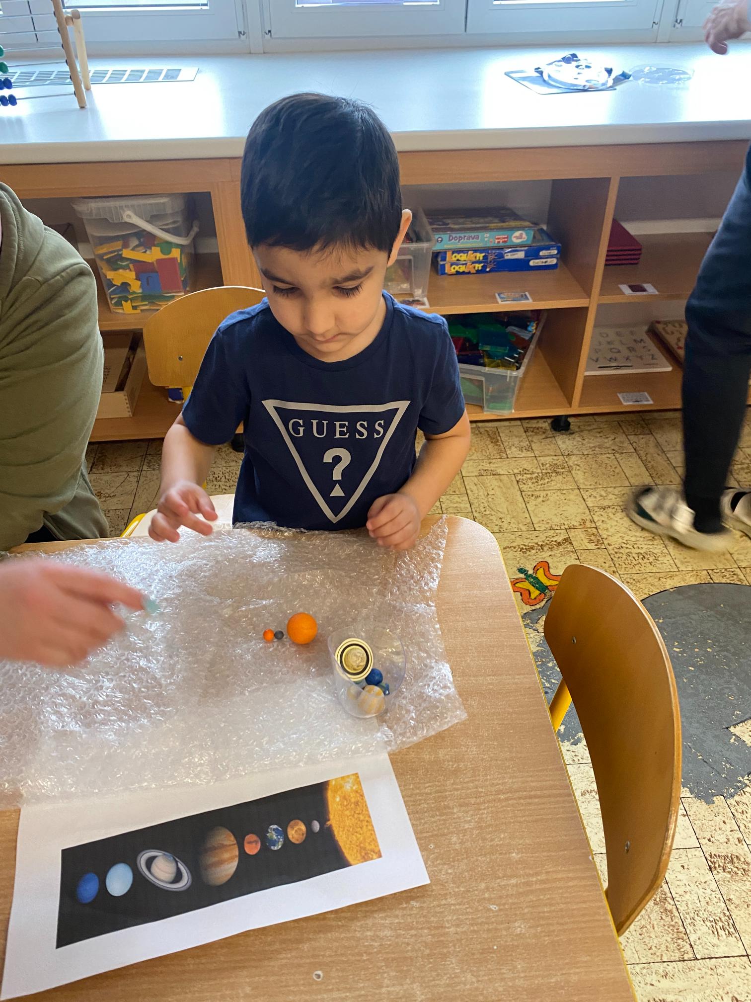 Věnovali jsme se tématu vesmír. Dozvěděli jsme se mnoho zajímavostí, vyráběli jsme planety ze slaného těsta, zkoušeli v pokusech a objevech co je a není magnetické, řadili jsme planety podle vzdálenosti od Slunce, kašírování – výroba planet, a mnoho dalšího, …