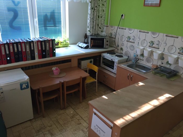 Centrum Domácnost je pracovní koutek, kde si děti mohou hrát na domácnost, a to nejen „jako“, ale doopravdy. Toto centrum je vybaveno nábytkem, který bývá v kuchyni. Má k dispozici dřez na nádobí s tekoucí vodou, funkční nádobí, přenosnou elektrickou troubu.